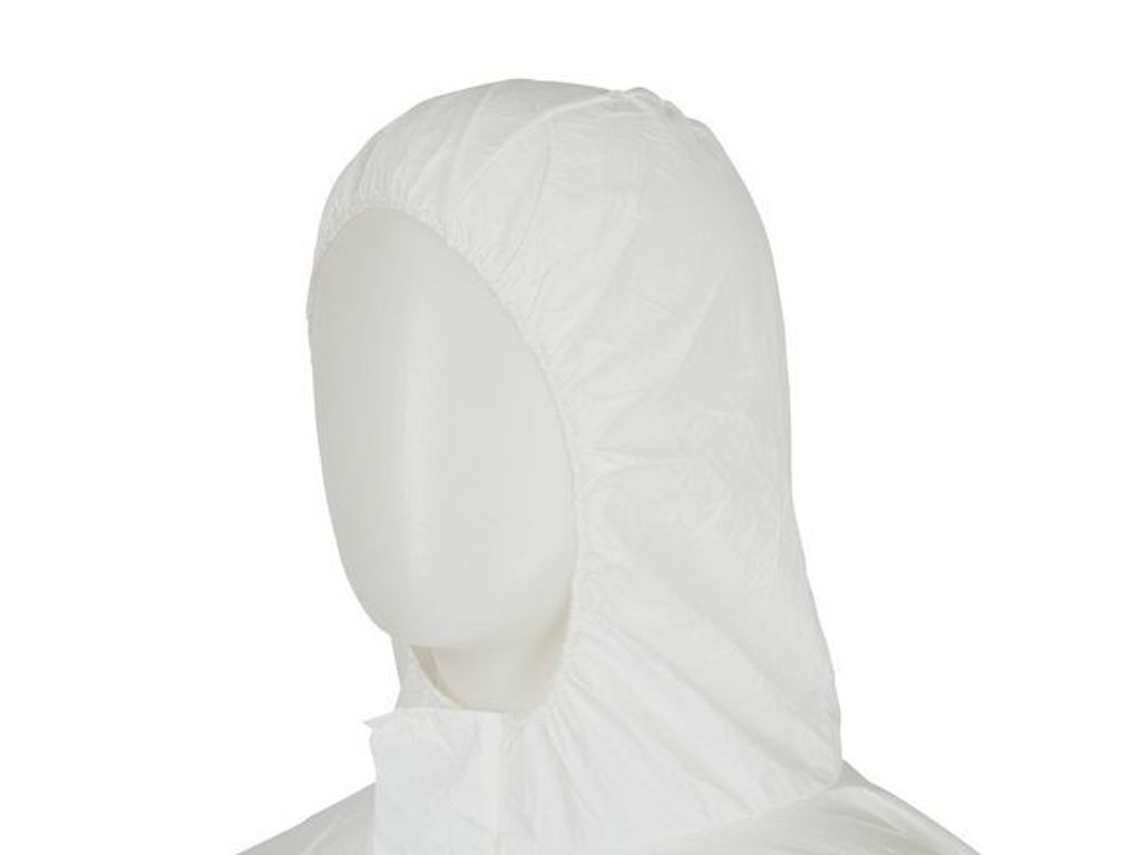 3M Skyddsoverall 4545 är tillverkad av ett tvåkomponents-non-woven-material som ger hög draghållfasthet och är täckt med ett mycket lågluddande mikroporöst laminat för utmärkt skydd mot farliga stänk, smittsamma ämnen och partiklar. Skyddsoverall 4545 är ett effektivt skydd mot vätskestänk, vissa kemikalier och farliga partiklar. Den här fräscha vita 3M Skyddsoverall 4545 uppfyller en rad olika standarder för kemikalieskyddskläder, däribland EN 14126 avseende smittsamma ämnen, EN 1073-2 avseende radioaktiva föroreningar, EN 1149, EN ISO 13688, EN 13034 Typ 6 avseende vätskestänk och EN ISO 13982-1 Typ 5 avseende damm. Den är tillverkad av ett tvåkomponents-non-woven-material som ger hög draghållfasthet och är täckt med ett mikroporöst laminat som låter värme och fukt avdunsta genom mikroporerna. Materialet har en särskild struktur och passform som möjliggör längre användningsperioder, så att du kan gör ditt jobb bekvämt. Stickade muddar, elastisk resår i midja och vid vrister gör det mer bekvämt för användaren och ökar rörelsefriheten, samtidigt som det mycket lågluddande materialet minskar kontamineringen av miljön. Utformningen med trepanelshuva är kompatibel med ytterligare personlig skyddsutrustning. Tvåvägsdragkedjorna och de helt självhäftande vindslåna minskar risken för hudexponering och skyddar mot föroreningar. Starkt sydda och delvis bundna sömmar minskar risken för läckage och hudexponering och kan ge förbättrad styrka. Den här skyddsoverallen är även belagd med antistatiskt skydd enligt EN 1149 som minskar statisk urladdning och kan minska risken för gnistor och antändning. Mjukt och lätt, mycket lågluddande och laminerat mikroporöst material som passar väl på kroppen för att underlätta rörelser. Trepanelshuva, tvåvägsdragkedja och självhäftande vindslå.