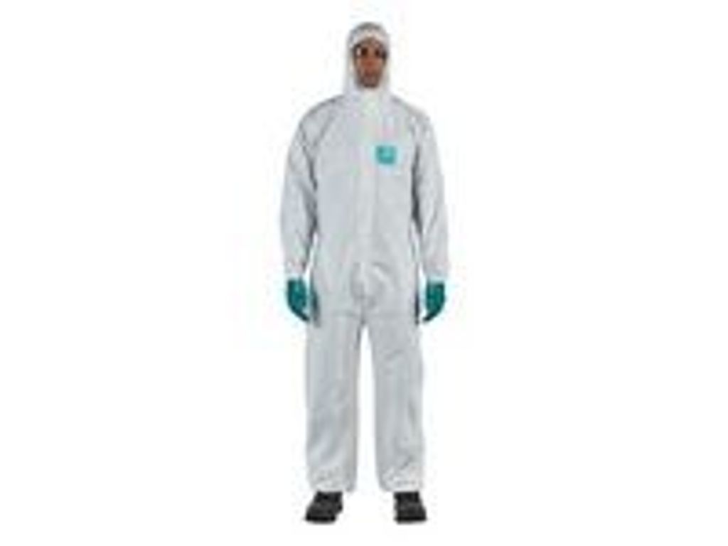 Skyddsoverall Alphatec 2000 ger ett bra skydd och har extra hållbara sömmar med barriär mot vätskor och partiklar. Korttidsoverallen är till för engångsbruk. Dräkt som designats för att ge ett extraordinärt bra skydd mot vätskor och partiklar. Perfekt för en lång rad olika branscher och användningsområden. Har en 3-delad huva för optimal passform med helmask, ett tvåvägs-blixtlås med stormklaff och resår runt handled, midja, ankel, huva samt tumme. Dräkten är tillverkad i PE-laminerat material och har sömmar med överlägsen styrka som fungerar som en barriär mot vätskor och partiklar. Lämplig för farmaceutisk användning, användning inom lantbruk och i renrum, brottsplatsundersökningar, veterinärarbete eller vid sprutmålning. Dräkten har Microgard 2000-standard som stämmer överens med följande europeiska standarder: Typ 5 EN ISO 13982-1: Skyddskläder mot fasta partiklar. Typ 6 EN 13034: Skyddskläder mot kemikalier i vätskeform. EN 14126: Skyddskläder mot smittsamma ämnen. EN 1073-2, klass 2: Skyddskläder mot radioaktiva föroreningar (radioaktiva partiklar). EN 1149-5: Skyddskläder med elektrostatiska egenskaper (dräkten är antistatisk). DIN 32781: Skyddskläder mot pesticider. - CE- certifierad - Godkänd enligt: EN 13034, EN 1073-2, EN 13982-1, EN 14126, DIN 32781, EN 1149 - Klassificering: Kategori III - Typ av förslutning: Dragkedja - Engångsbruk: Ja - Material: Polyeten - Typ av söm: Bunden - Vikt: 11,6 kg - Skyddsnivå: Ty5, Typ 6 - Färg: Vit - Storlek: XXL