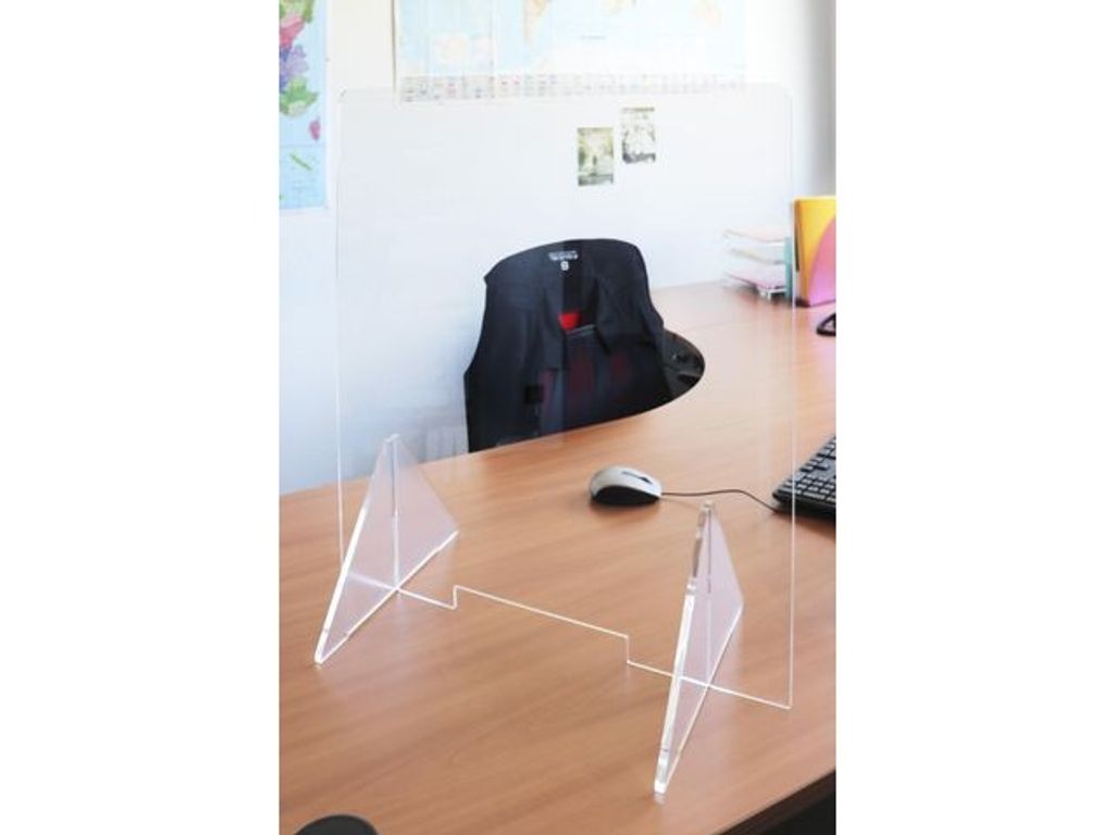 Transparent akrylskärm, skyddar personalen effektivt i miljöer med många människor mot salivstänk och säsongsepidemier. Ger ett effektivt skydd mot influensa och andra virus. Möjliggör säker kommunikation och distribution. Levereras med två triangulära fötter, lätt att installera. Kan användas var som helst i miljöer där det vistas många människor, exempelvis apotek, stormarknader, butiker, kontor etc. - Mått: 600x650mm - Mått öppning: 230x30 mm - Tjocklek: 4 mm