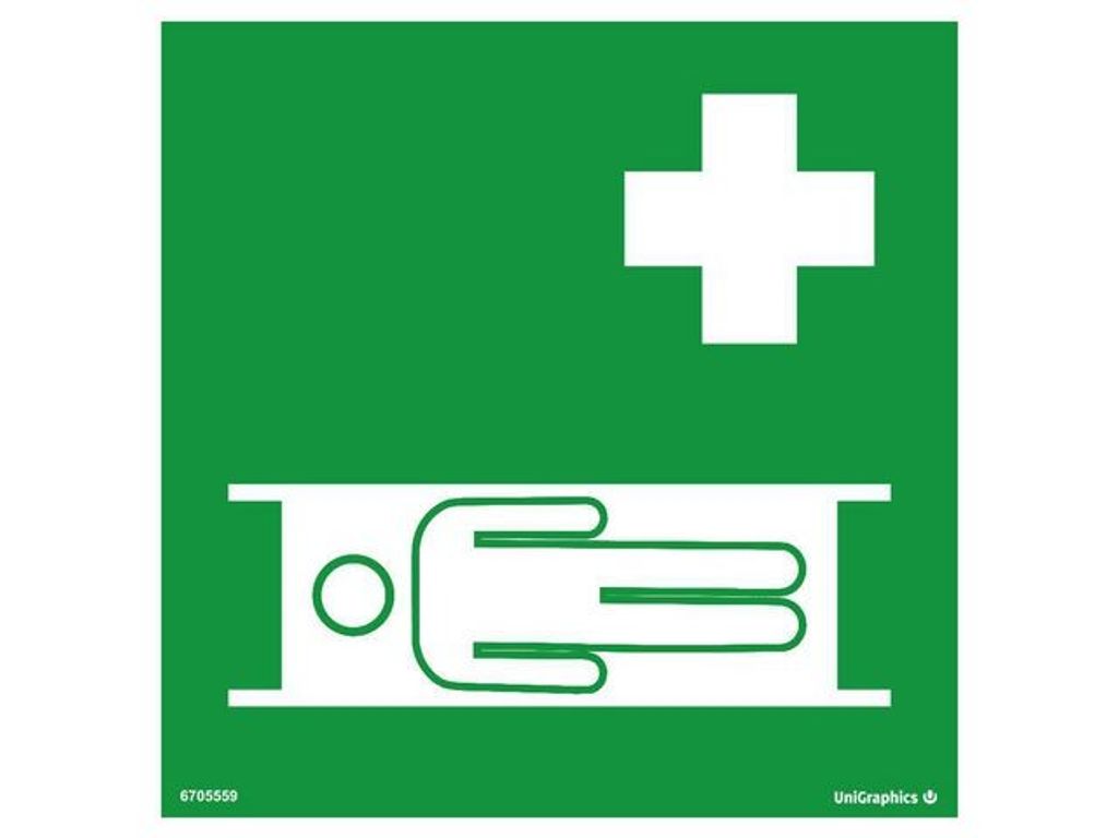 Beskrivning av Skylt Bår 200x200 mm Plast Nödskylt som tydligt upplyser vart man kan finna det man behöver om olyckan är framme. Standardskylt med bild av en Bår. - Material: Plast - Storlek: 200x200mm