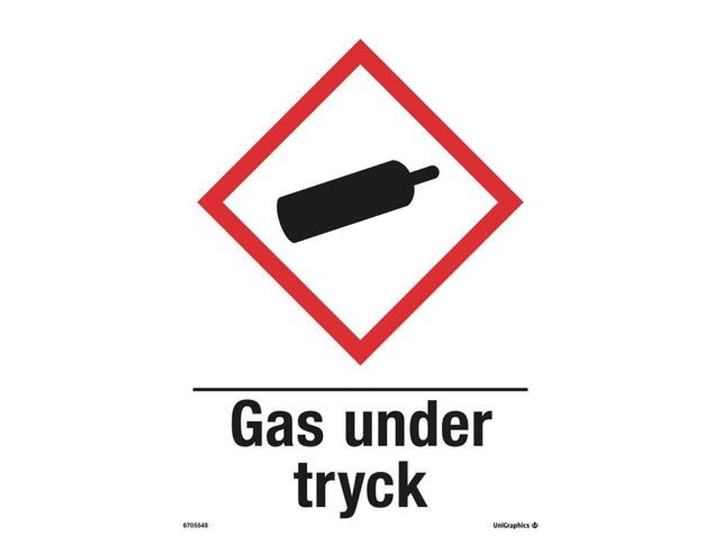 Beskrivning av Skylt Gas under Tryck A4 Plast