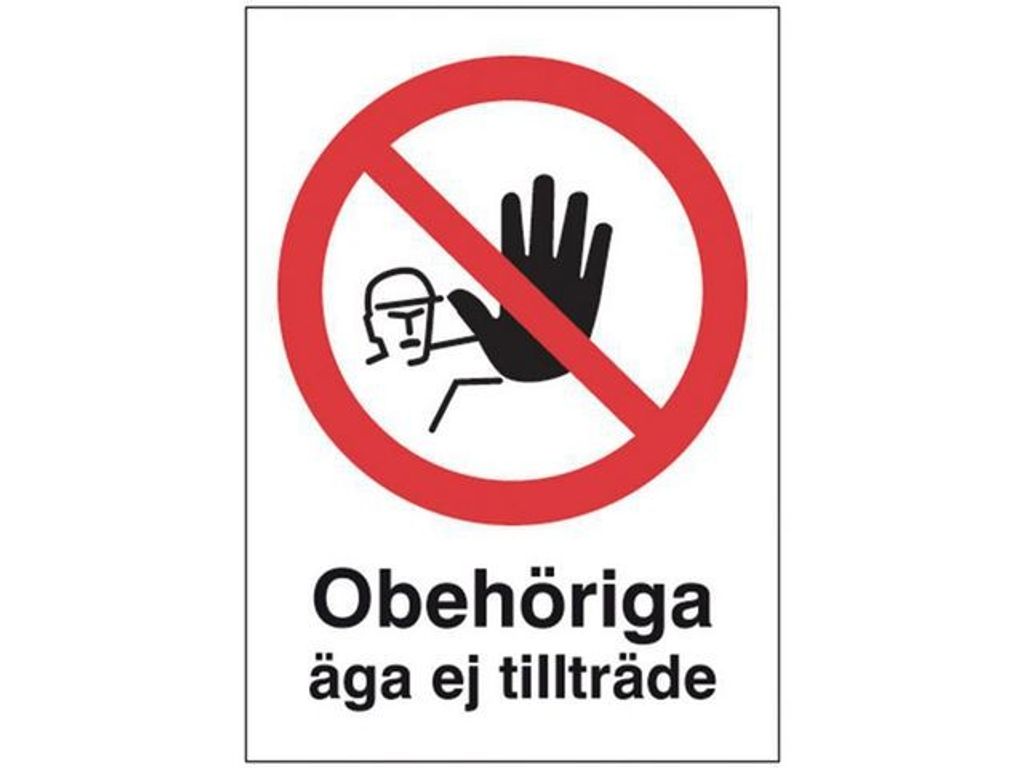 Beskrivning av Skylt Obehöriga äga ej tillträde A4 Alu Skylt i aluminium för tydliggörande av budskap. Förbudsskylt med budskapet 'Obehöriga äga ej tillträde'. - Material: Aluminium - Storlek: A4