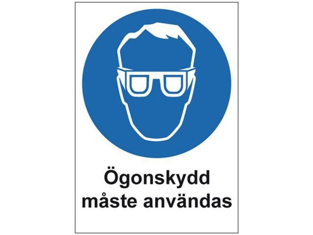 Beskrivning av Skylt Ögonskydd A4 Plast Skylt i plast för tydliggörande av budskap. Förbudsskylt med budskapet 'Ögonskydd måste användas'. - Material: Plast - Storlek: A4