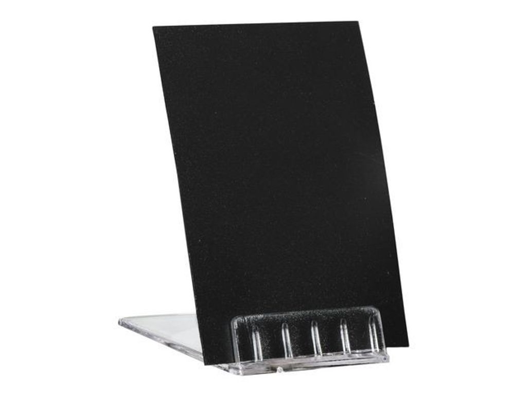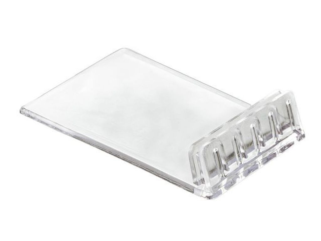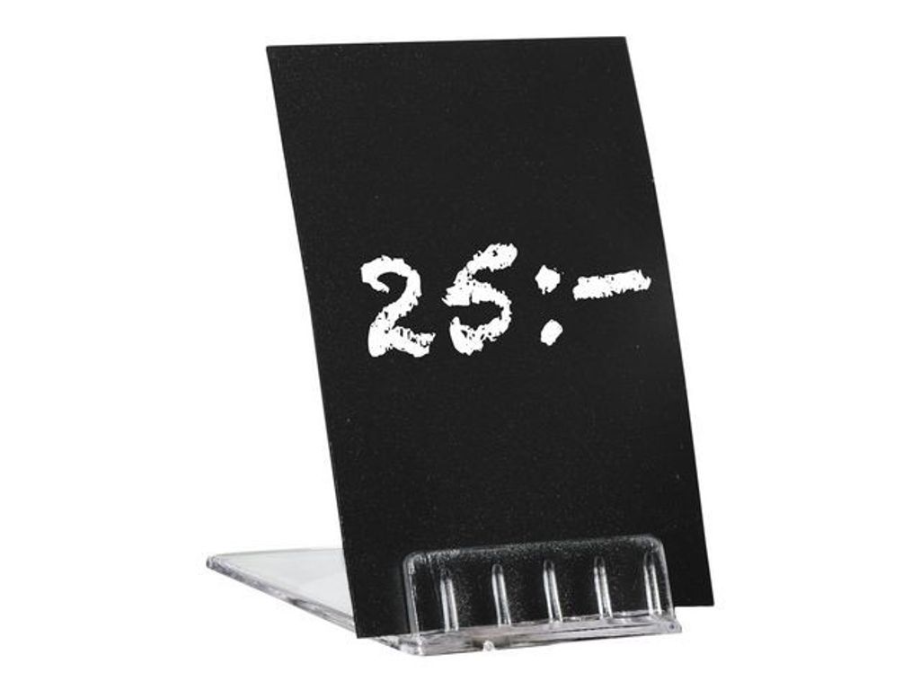 Smart mindre skylthållare för display av information på t.ex. bord eller receptionsdisk. Lutande skylthållare i genomskinlig akryl med en stabil bottenplatta. Lutningsvinkeln gör informationen på skylten synlig och lättare att läsa. Passar bra för mindre skyltar. - Mått LxB: 60x40mm - Öppning som håller skylt: 0,5mm - Förpackning: 10st