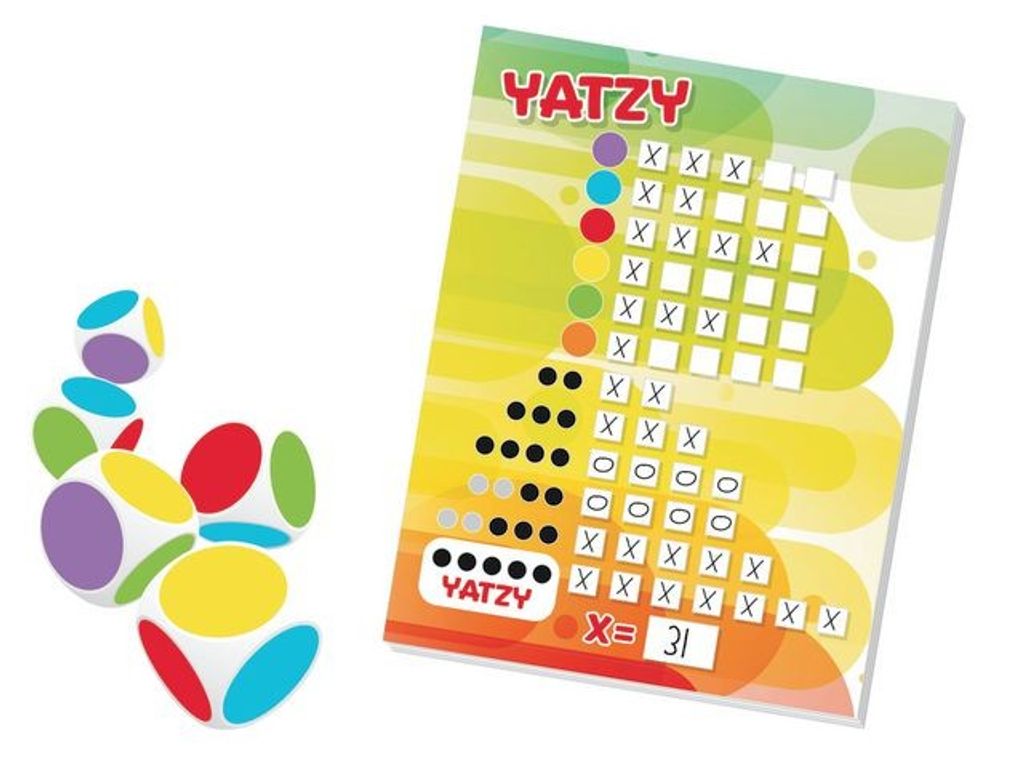 Barnyatzy med färgkombinationer som ger poäng. Barnyatzy går ut på att samla olika färgkombinationer som ger poäng, istället för som i klassiska Yatzy där man samlar sifferkombinationer. Att samla färgkombinationer gör det enklare för barn att spela. - Antal spelare: 2-6 - Rekommenderas från 5 år Varning. Lämpar sig inte för barn under 3 år