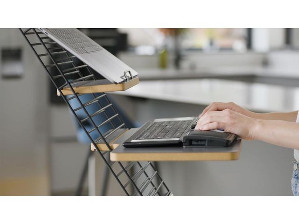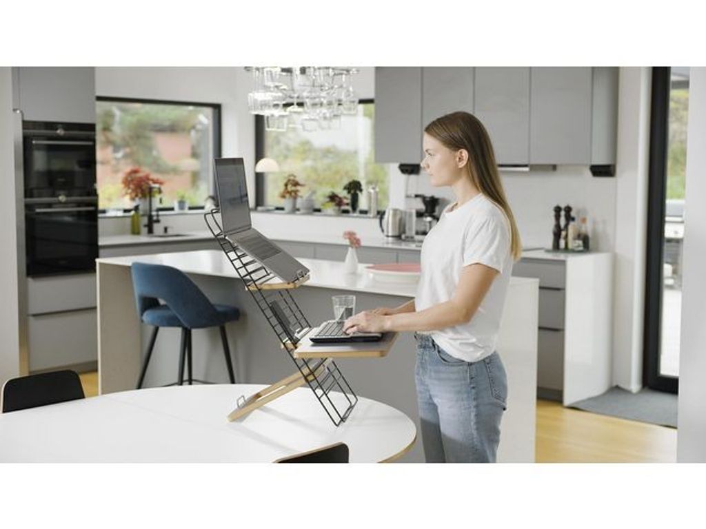 Genom att växla mellan en stående och sittande position mår du bättre och orkar mer. Elegant och ergonomisk. Hjälper dig slippa onödig smärta när du arbetar vid datorn. Komplett med en centrerad pekenhet för en elegant, ergonomisk lösning, hemma eller på kontoret. - Rekommenderad längd på användare: 150 -190 cm med en skrivbordshöjd på 70 cm - Maximal skärmstorlek: 17 tum - Maximal last: 10 kg - Mått: B 600 x D 495 H 680 mm - Vikt: 6.5 kg