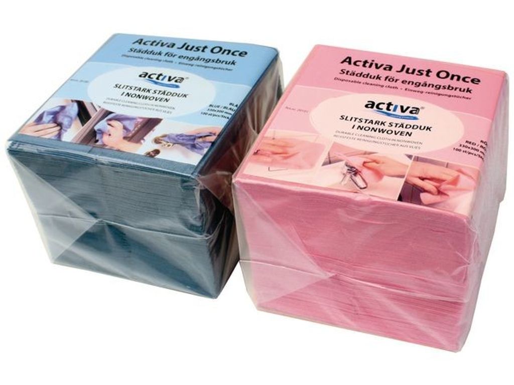 Städduk för engångbruk. Denna tåliga städduk i nonwoven kan användas flera gånger utan att gå sönder. När du är klar är det bara att slänga städduken. Städdukarna är färgkodade vilket underlättar hygien- och städrutiner. Duken kan användas både torr och fuktig. Perforerad öppning på förpackningen gör det enkelt att ta en duk åt gången. - Engångsstädduk - Mått: 330 x 300 mm - Färg: Blå