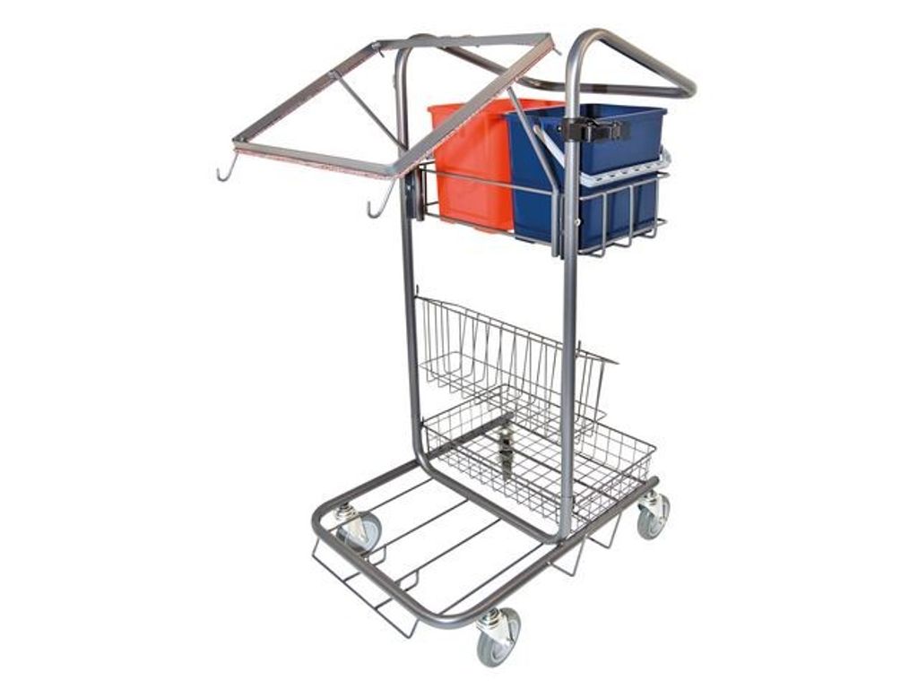 Beskrivning av Städvagn NORDEX Easy liten Städvagn Easy liten är en smidig städvagn för mindre och medelstora städobjekt. Komplett med 1 st korg, 1 st hinkhållare, 1 st skafthållare, 1 st stativhållare och 1 st sopsäckshållare. Mått: L550xB400xH1070 mm.