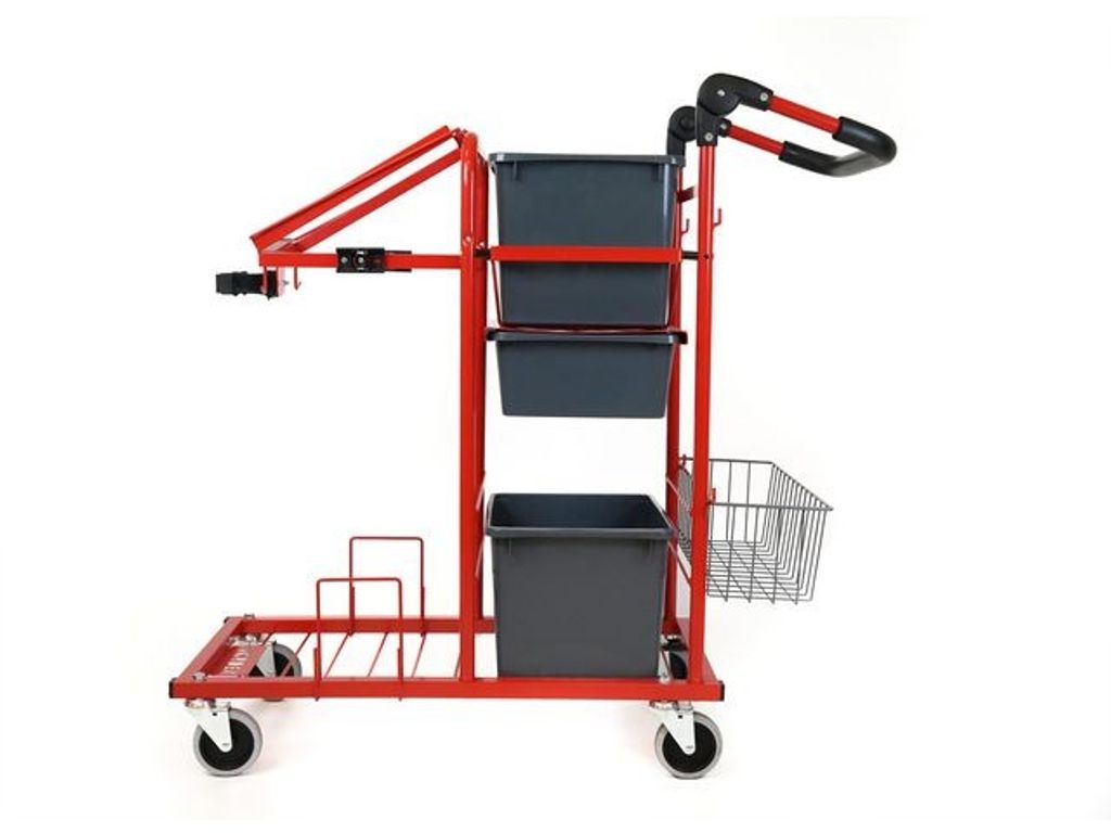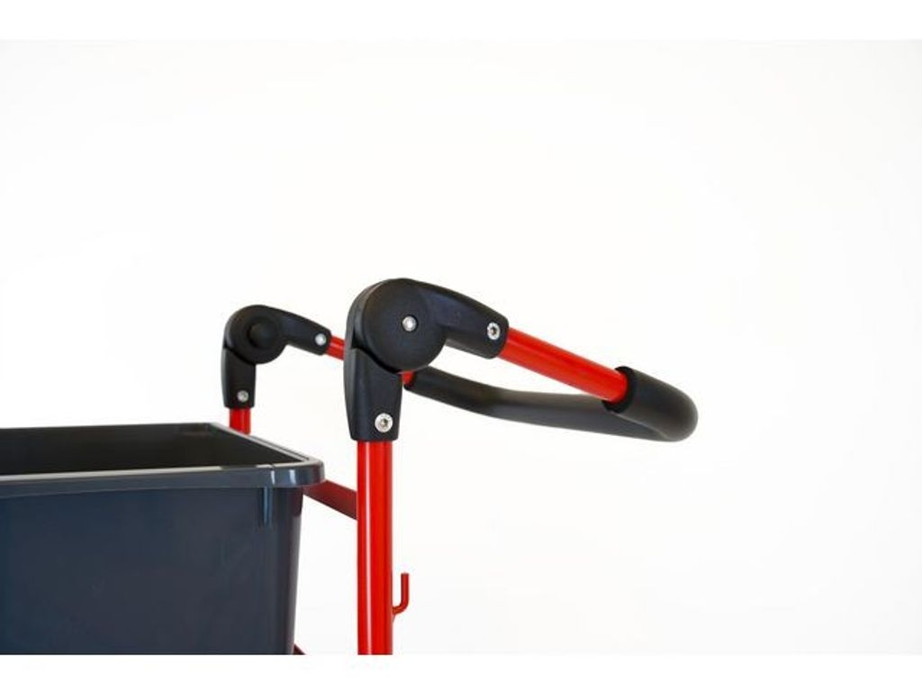 Flexibel, smidig vagn för de mindre utrymmena. Nordex smala, smidiga och populära vagn med smarta och prisvärda lösningar. Ställbart mjukt handtag för utmärkt ergonomi. Komplett med: 2 st stora plastlådor (20 l), 1 st mindre plastlåda (10 l), 1 st trådkorg med två placeringsalternativ, 1 st hållare för sopsäck, 2 st stöd för moppstativ, 1 st Toolflex One-hållare för ex. golvmopp, 2 st Tollflex One adaptrar för valfria Toolflex One-tillbehör (säljs separat). 4 st 100 mm hjul varav ett bromsat krokar för tvättpåse Tröskelkrypare finns som tillbehör, säljs separat. Metallplatta med Nordex-logga Tillval vid köp av 9 vagnar: valfri färg på vagnen (280 st olika nyaner), laserfräst metallskylt med egen logotyp. - L 95 cm, B 38 cm (med trådkorgen 46 cm, H 101 cm. - Vikt 13,95 kg - Standardfärg: Röd