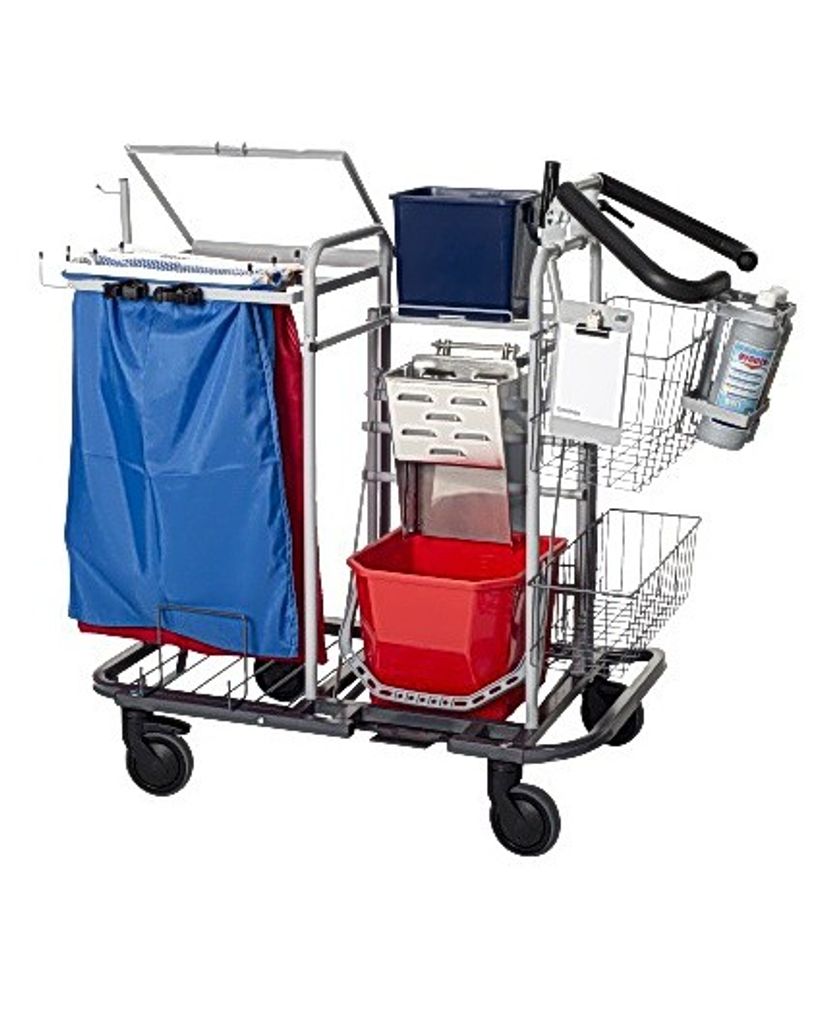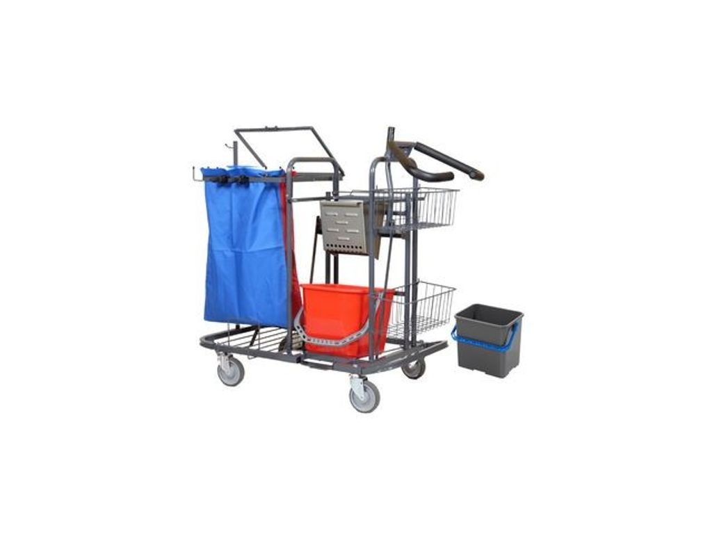 Komplett utrustad vagn med en stadig svabbpress i bekväm arbetshöjd. Vagnen är av hög kvalitet, robust och ergonomiskt utformad för moderna städmetoder. Komplett med 3 st korgar, tröskelkrypare, rostfri press, 15 l hink, 6 l hink, sopsetshållare, 2 st tvättsäckar och 2 st tvättnät. Vagnen bygger på flexibla lösningar som tillsammans ska underlätta det dagliga arbetet. Bland annat är vagnen utrustad med ett greppvänligt, varmt och mjukt handtag som ger stora möjligheter till varierad körställning. Ställbart handtag i två lägen. Pressvagnen är utrustad med en stadig rostfri press i bekväm arbetshöjd, hand- och/eller fotmanövrerad. Övrig utrustning är rymliga korgar, sopsäckshållare, skafthållare och tröskelkrypare. Med dom lättkörda tysta hjulen så styrs vagnen ergonomiskt och lätt. Flaskhållare 62600542 och Skrivplatta 62600543 är tillbehör och köps separat. - Ergonomisk - Unik tröskelkrypare - Lättkörda designade hjul - Mått: L 930 mm, B 580 mm, H 1090 mm