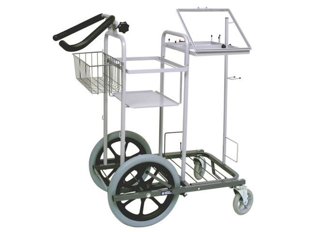 De stora robusta hjulen gör vagnen smidig att hantera i framför allt trappor men fungerar lika bra när vagnen ska förflyttas mellan fastigheter, t.ex. över höga trösklar eller med snöslask som underlag. Vagnen kan även utrustas med fasta framhjul för bättre stabilitet på ojämna underlag. Greppvänligt, reglerbart och mjukt handtag som ger stora möjligheter till varierande körställningar. Mått: L920xB560xH1110 mm. - Levereras utan plåthylla, endast plats för backar.