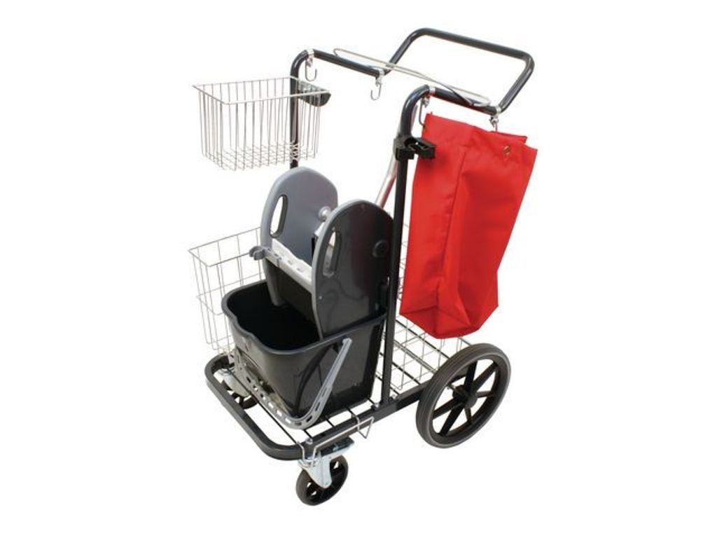 Mycket lätt vagn att manövrera. Lämpar sig både för våtstädning, golvvård och utomhusmiljö. 310mm bakhjul och 150mm framhjul. Plats för material och 70 liters sopsäck. Liten tvättpåse. Tröskelklättrare. Krokar. Plats för 1 stativ. - Kompakt fastighetsvagn. - Mått (LxBxH): 730x565x1025mm - Svensktillverkad