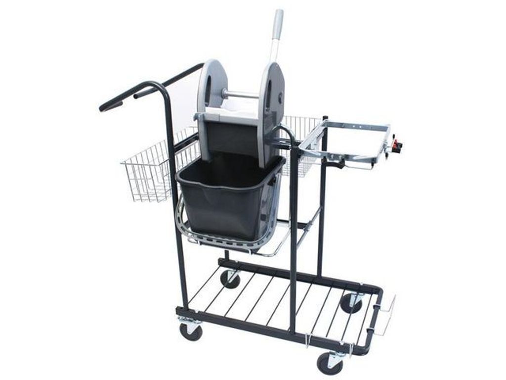 Beskrivning av Städvagn Svabb Special Liten och stabil svabbvagn. Komplett svabbutrustning. Krokar för moppar, säckhållare 125L, toolflex skafthållare, 2 trådkorgar, 1 stor tvättpåse. Enkel att montera.