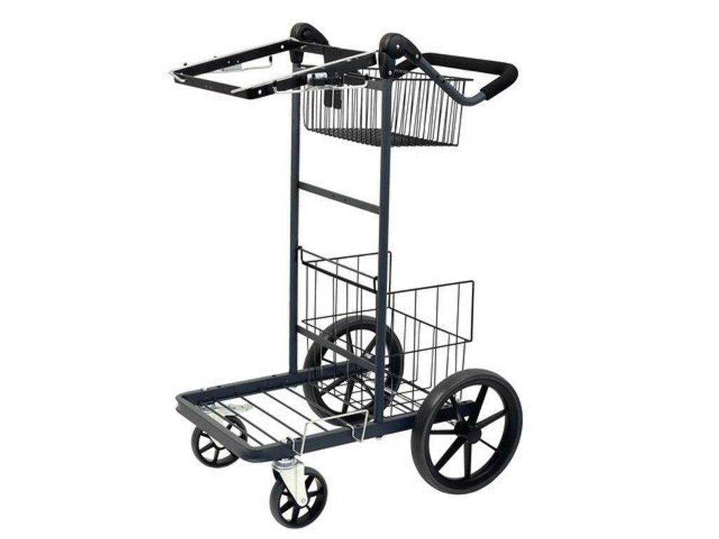 Beskrivning av Städvagn Trapp 3 Utomhus Stabil basvagn som har generöst med plats för material. Plats för två stativ, krokar och med reglerbart handtag. - Mått hjul: 310 mm stora bakhjul och 150 mm framhjul. - Inkluderar en 125L säckhållare - Mått: 69x49x116cm