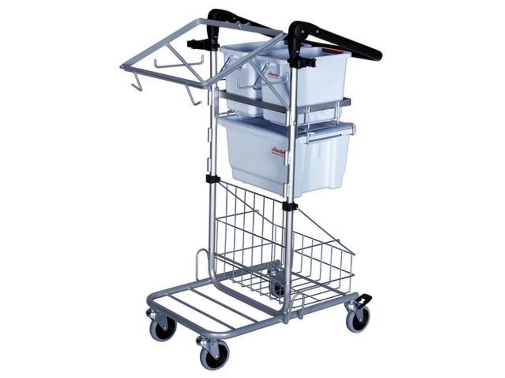 Förvara rengöringsartiklar tillsammans för enkel städning av kontor och små butiker med denna Vileda Micro Premium-vagn. Fyll denna Vileda Micro Premium-vagn med städprodukter och rengöringsmedel för effektivt underhåll av små butiker och kontor. En ergonomisk design och tryckhandtag i kombination för bekvämlighet, medan hjulen på den här städvagnen gör det enkelt att manövrera från rum till rum. Med trådställ för att hålla förbrukningsmaterial och färgkodade hinkar för organisation är denna Vileda Micro Premium-vagn en perfekt plats för förvaring och användning av förbrukningsmaterial. - Mikrovagn med flera funktioner för städprodukter - Färgkodade hinkar för organisation medföljer - Ergonomisk design på hjul - Utmärkt för kontor och små butiker - Färg: Mörkgrå