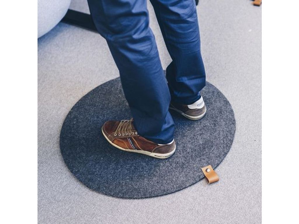 JobOut Ståmatta Design Rund är en ergonomisk ståmatta som avlastar kroppen vid stående arbete och fördelar belastningen mellan fötterna. Ökar blodcirkulationen och förbränningen samt minskar tryck på ryggdiskar och fötter. Slitstarkt filtmaterial med hänge i äkta läder. - Mått: 60 cm(diameter)+1,8 cm (höjd) - Material: Filttyg, PU, SBR, ftalatfri PVC och läder.