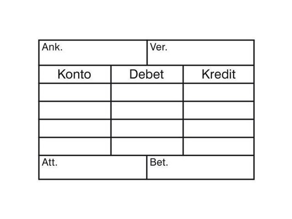 Självfärgande EOS konteringsstämpel med standard konteringlayout. Svart färg som uppfyller kraven för Svenskt Arkiv. Återinfärgas med stämpelfärg EOS. - Mått: 60x39 mm - Godkänt för Svenskt Arkiv - Färg: svart - Antal kolumner: 3 - Den svarta infärgningen uppfyller kraven för Svenskt Arkivs arkivbeständighet