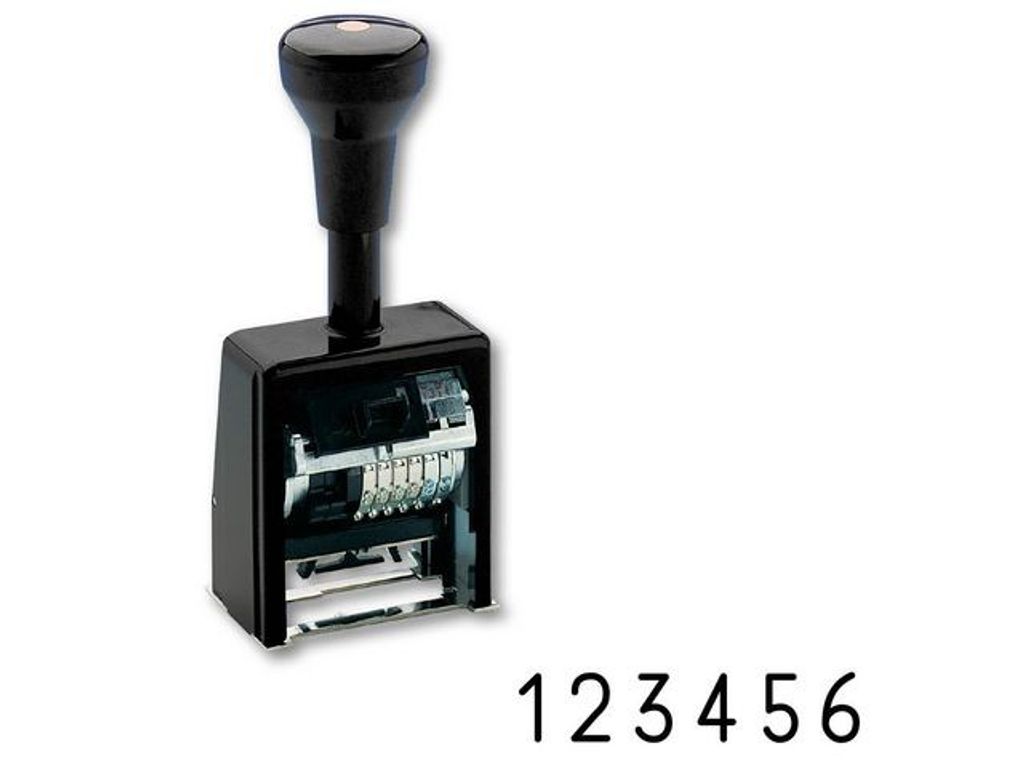 Beskrivning av Stämpel REINER B6K, 6 hjul 4,5 mm Numreringsstämpel med en enkel utbytbar dynkassett. Stämpeln har flera växlingsmöjligheter. - Enkel att byta