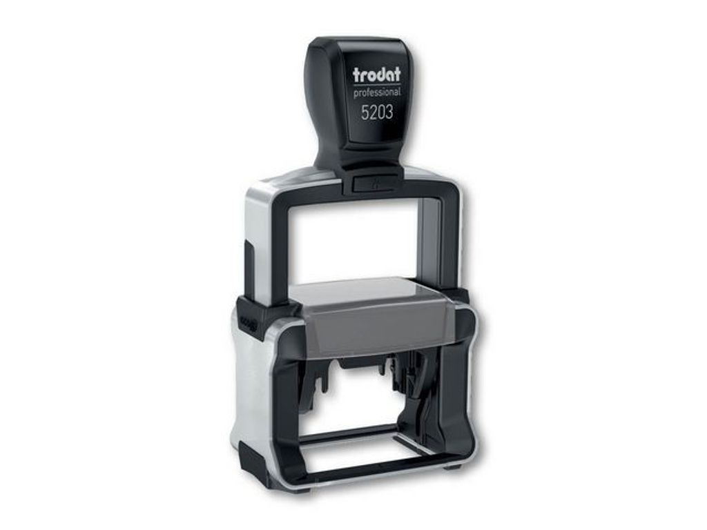 Beskrivning av Stämpel TRODAT 5200-5203 med valfri text Klimatneutral stämpel med valfri text eller valfritt motiv. Stämpeln har en mycket enkelt utbytbar dynkassett. - Enkel att byta