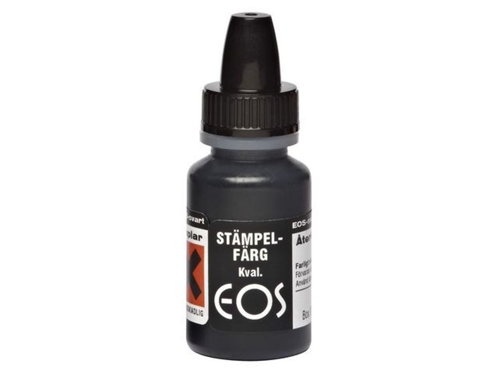 Beskrivning av Stämpelfärg EOS svart 10ml Färg för återinfärgning av stämplar. Färg för återinfärgning av Colop EOS-stämplar samt UniStamp märkta med etiketten EOS-Färg. Svart - Färg: svart - Uppfyller kraven för svenskt arkiv