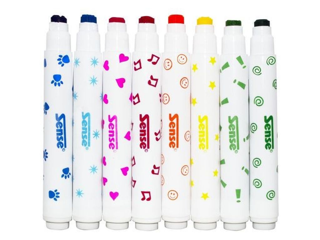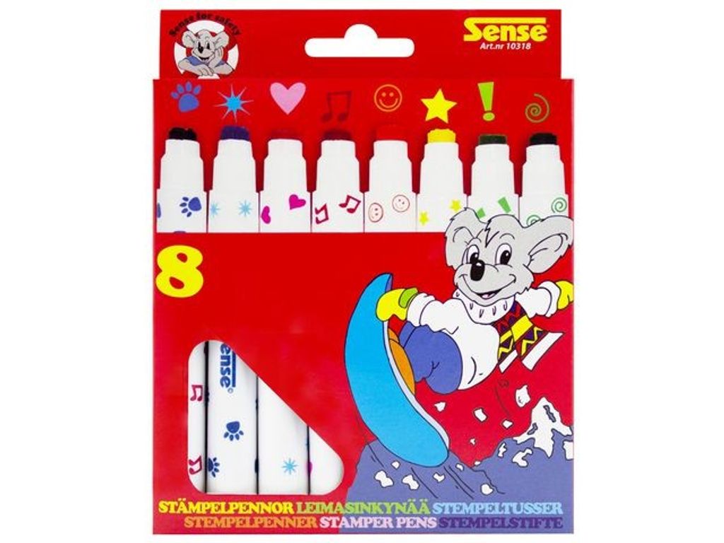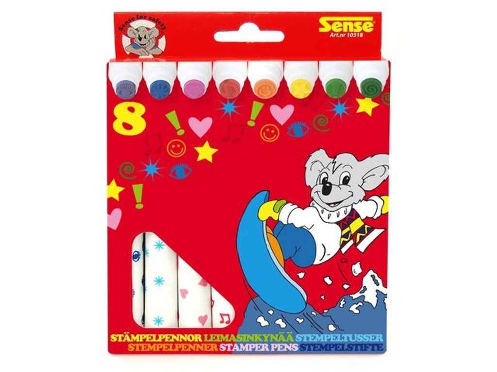 Det här setet med stämpelpennor från Sense® innehåller åtta stämpeldesigner i olika färger som förbättrar alla konstprojekt. Det finns åtta olika stämpelpennor i det här setet från Sense®. Det finns t.ex. en stjärna, spiral, utropstecken och mer. Kan användas för att enkelt utsmycka dina konstprojekt. De passar utmärkt för att skapa levande mönster på kort, papper och andra konstprojekt, och pennorna är ett praktiskt hjälpmedel för både lärare och barn. Den här simpla och roliga stämpelpennan gör det spännande att färglägga. - Stämpelpenna för färgläggning - Har 8 olika stämpelpenna - Lämplig för barn över 3 år - Färger: Blandade - Antal: 8 Varning. Lämpar sig inte för barn under 3 år