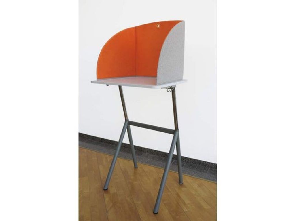 Bordsskärm som skapar avskildhet och bidrar till en lugnare miljö. Bordsskärmen dämpar ljud och skärmar av ytor där det behövs. Kärnan består av en stabil och återvinningsbar kanalplast. Bordsskärmen är klädd i ett grått, melerat tyg med tuftad look. Invändigt ör den klädd med alcantara-liknande tyg som finns i fyra olika färger. Smart öljett som gör att skärmen kan hängas upp då den inte används. - Hopfällbar - Tyg utvändigt 80% polyester, 20% viskos - Invändigt tyg 90% polyester, 10% bomull - Färg: Orange - Mått: 58x55x55 cm