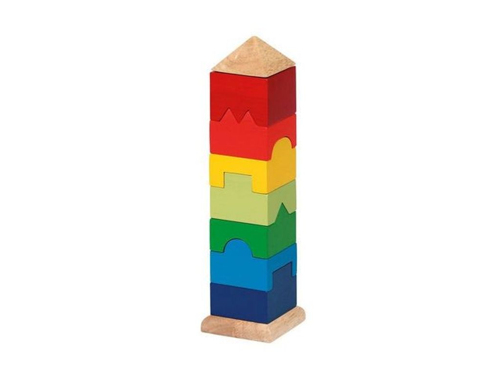 Stapeltorn i fina färger och olika former, 9 delar. Stapeltorn i fina färger och olika former. Träleksak som stimulerar barnens fantasi och utvecklar koordinationsförmågan och finmotoriken. - Mått: 7x7x25 cm - Material: Trä - Rekommenderad ålder: 2+ - Antal delar: 9 stycken