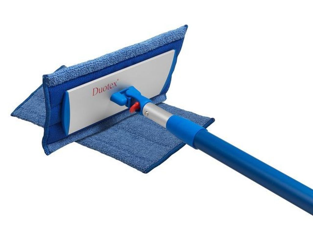 Det nya Duotex Hygiene moppstativet är utformat för att uppfylla högsta möjliga standard för hygien. Dess speciella anodiserade beläggning ökar kraftigt motståndet mot korrosion och mekaniska skador, och ger inga synliga spår av flytande tvättmedel, smuts, damm eller fingeravtryck. Tyngdpunkten i mitten av stativet ger bättre balans och ergonomi.