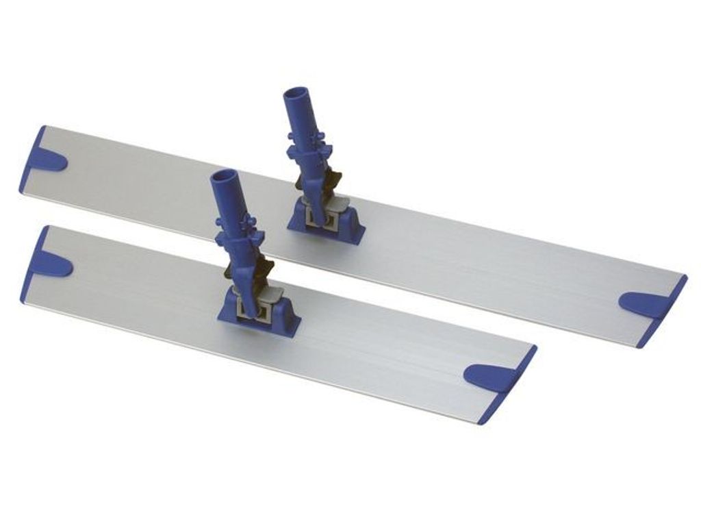 Högkvalitativt kardborrestativ tillverkat i eloxerad aluminium. Ovansidan är helt slät, vilket eliminerar smutsfällor. Kardborren är monterad i skenor på undersidan och kan lätt bytas ut. Quick-snap-leden (se bild) gör det mycket enkelt att koppla på och av skaft. Möjligheten att låsa stativet i ett läge ger ett större användningsområde för moppningen, t.ex. golvlister, väggar, ventilationskanaler, tak och belysning.