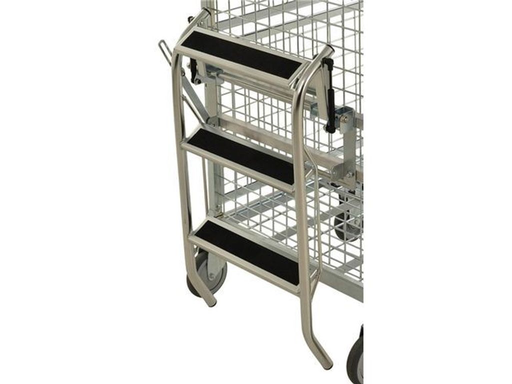 Beskrivning av Stege Serie 9000 Stege till hyllvagnarna i 9000-serien. Stege inklusive handtag. Monteras på sidan av vagnen. - Belastning: 125kg - Storlek: 550 x 450 x 670mm (LxBxH) - Färg: Elförzinkad - Vikt: 9kg