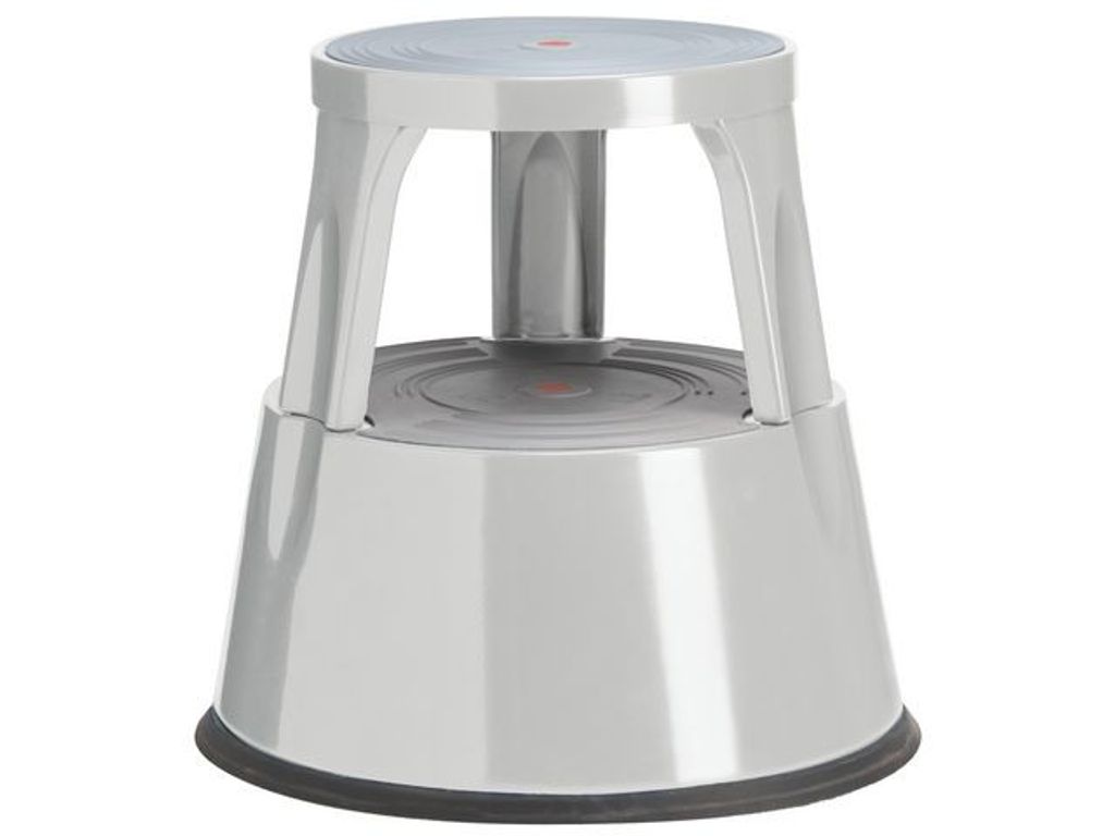 Stabil stegpall som rullar på fjädrande länkhjul och som låser automatiskt när du står på den. Tillverkad av pulverlackad metall. Ståytor och halkskydd av gummi. Maxbelastning: 150 kg. Mått: Höjd 41 cm, diameter i botten 43,3 cm. - Levereras omonterad