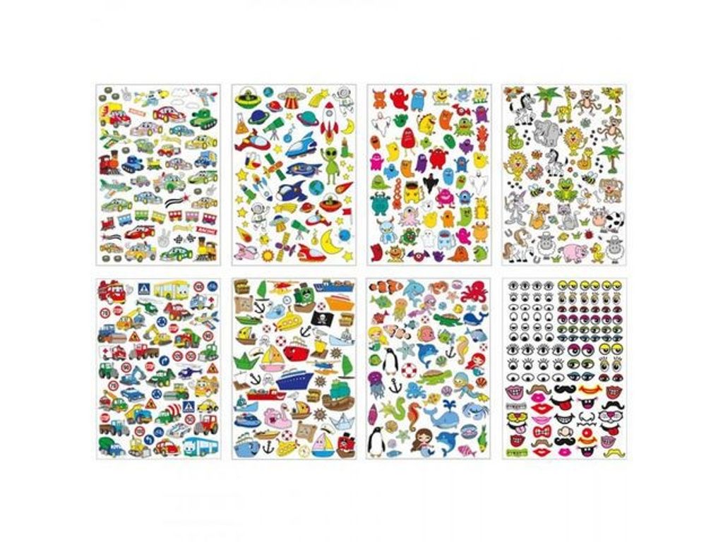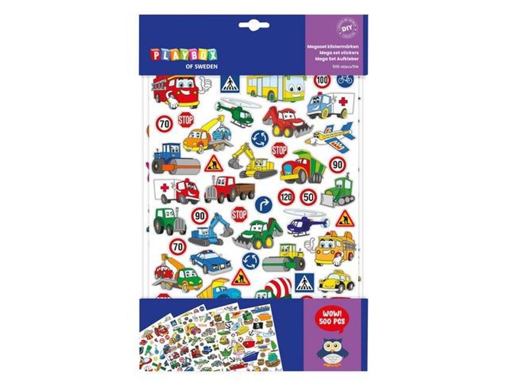 Åtta ark med 500 stickers av olika motiv. Allt ifrån roliga fordon, hemska monster, till söta djur. Klistra ihop till en spännande serie med massor av detaljer, eller skapa roliga inbjudningskort. - Antal: 8 ark, totalt 500 stickers - Mått, klistermärken: bredd 10-64 mm, höjd 10-78 mm - Mått ark: 218x318 mm - Material: Papper