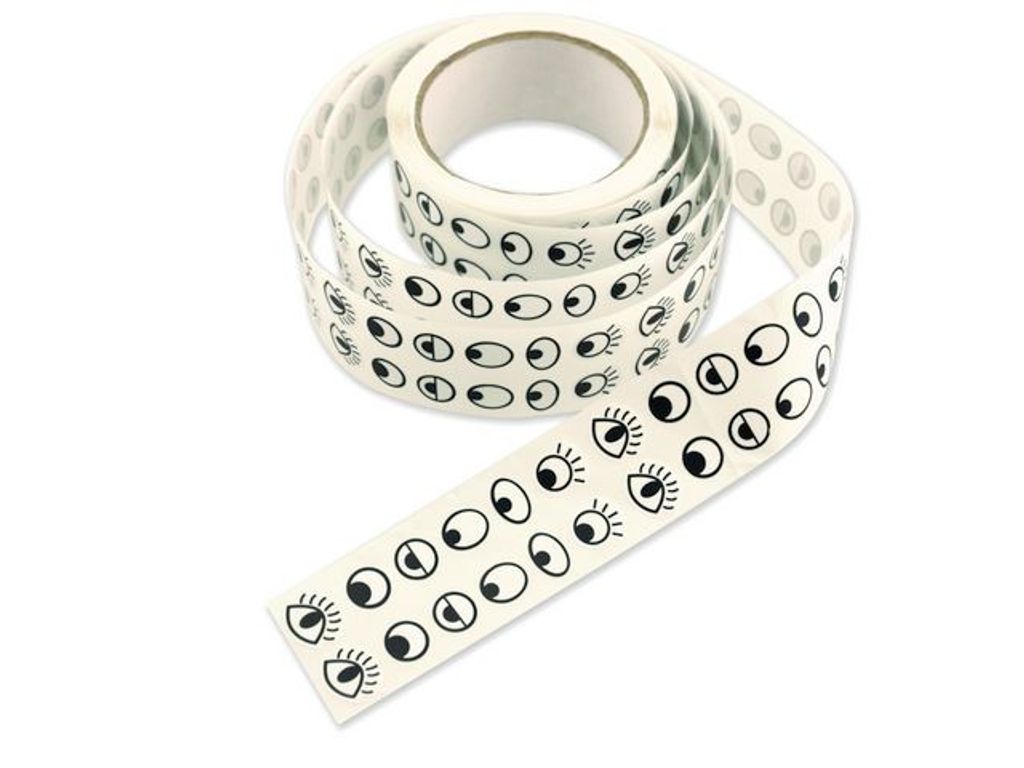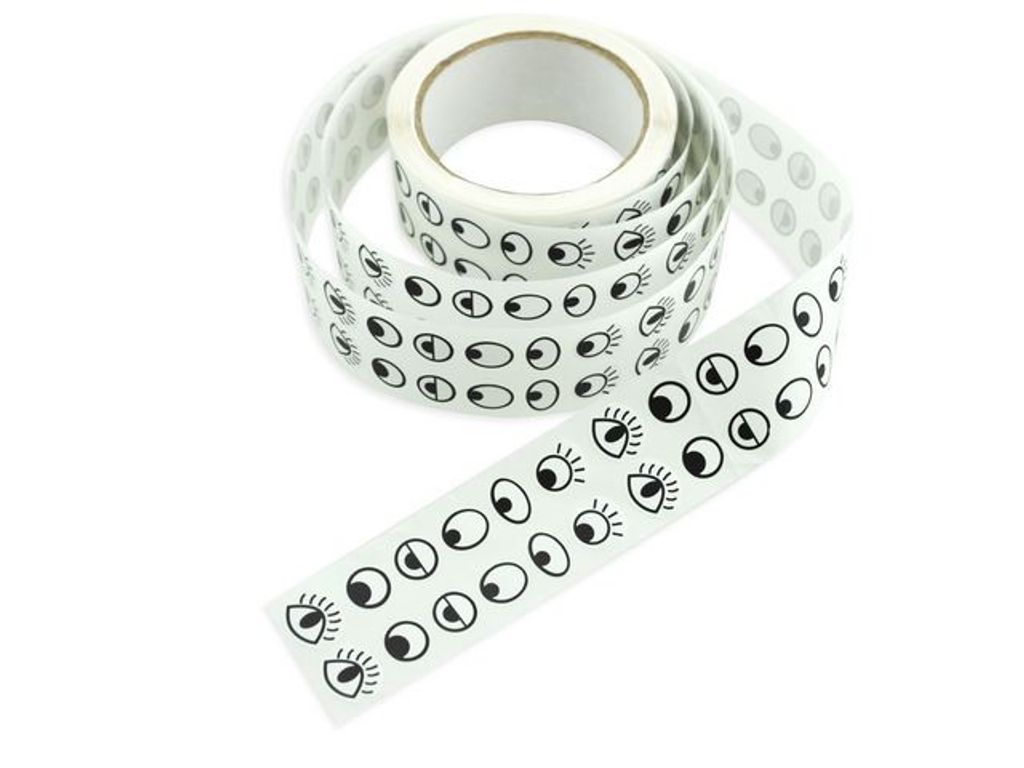 Stickers med motiv av ögon i olika varianter, på rulle. Klistermärkena är lätta att fästa på teckningar eller använda till papperspyssel och ger ett roligt och levande resultat. - Antal: 20007FP - Mått på rullen: Ø103 mm - Bredd: 45 mm - Material: Papper