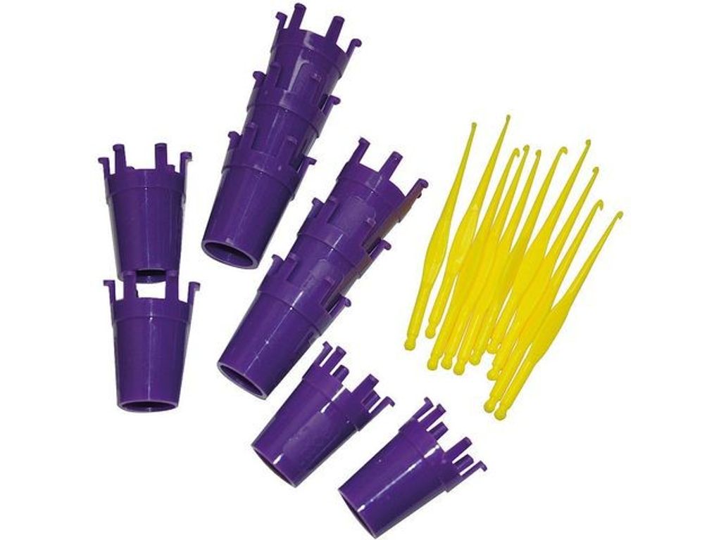 Sticklisor och virknålar av hög kvalitet. Används till loom bands, eller fancy loops. Släpp loss skaparlusten och börja skapa färgglada armband! - Antal: 10 st sticklisor och 10 st virknålar - Mått sticklisa: 30x40 mm - Mått sirknål: 85x4 mm - Färg: Lila och och gul - Material: PS