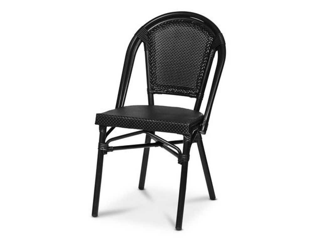 Sol, vind och vatten! Dessa snygga och tåliga stolar klarar alla väder och är perfekt för uteserveringen eller uteplatsen! Stapelbar utemöbel med aluminiumstativ. Sits och rygg är gjorda av fiberrotting. Kryssförstärkt sits för bättre hållbarhet. Uppdatera inredningen med dessa utemöbler! Stolarna är lätta att torka av och ingen smuts sätter sig! - Svart