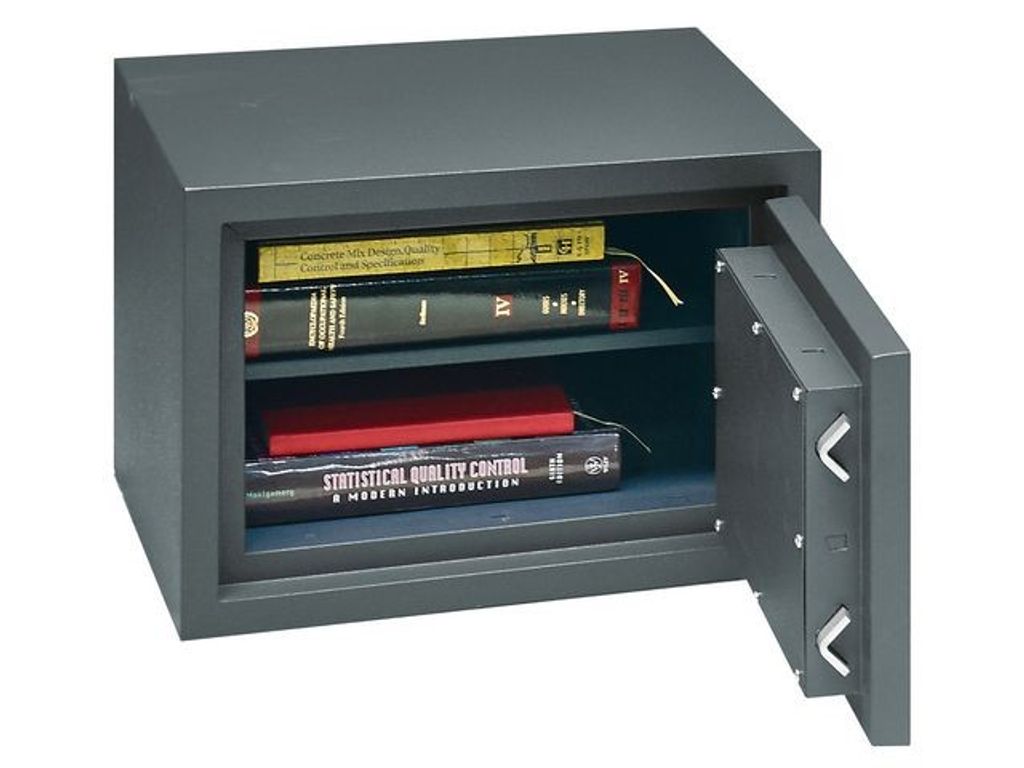 Stöldskyddskåp från Håbeco med en volym på 21 liter. Litet och nätt stöldskyddsskåp EN 14450 i klass S2 och med brandklassning enligt EN 15659 i 30P. 1 hylla ingår. Skåpet har 2 förankringshål i botten. Bult medföljer. Skåpet kan användas både i hemmet eller på arbetsplatsen. - 30P enligt EN 15659 - Yttermått (hxbxd): 300 x 445 x 390 mm - Innermått (hxbxd): 210 x 355 x 281 mm - Vikt: 25 kg - Volym: 21 liter - Två veckors leveranstid - Leverans sker till lastkaj, godsmottagning eller gatuplan.