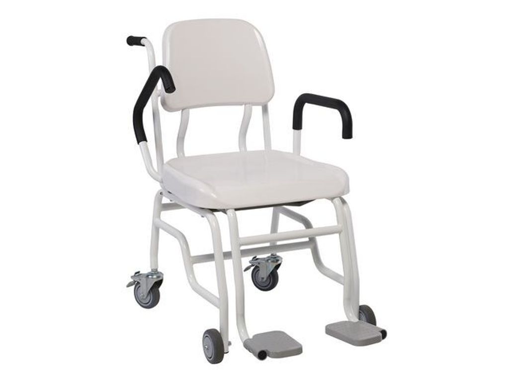 Stolvåg MBCA-250 som gör vägningen enkel och bekväm. Robust och säker stolvåg med lyftbara armstöd och flyttbara fotstöd för att underlätta i- och ursittning. De bakre hjulen är svängbara och försedda med lås för bästa vägning och säkerhet. Sits i ABS-plast och pulverlackerd rörram gör vågen enkel att rengöra. - Kapacitet: 250kg - Upplösning: 100g - Godkänd enligt OIML Klass III - CE inklusive MDD-godkännande - Total vikt: 15,5 kg - Storlek, plattform: 375 x 320 mm - Storlek, totalt: 570 x 320 x 1535 mm - Drivs med 6xAA batterier (ingår ej)
