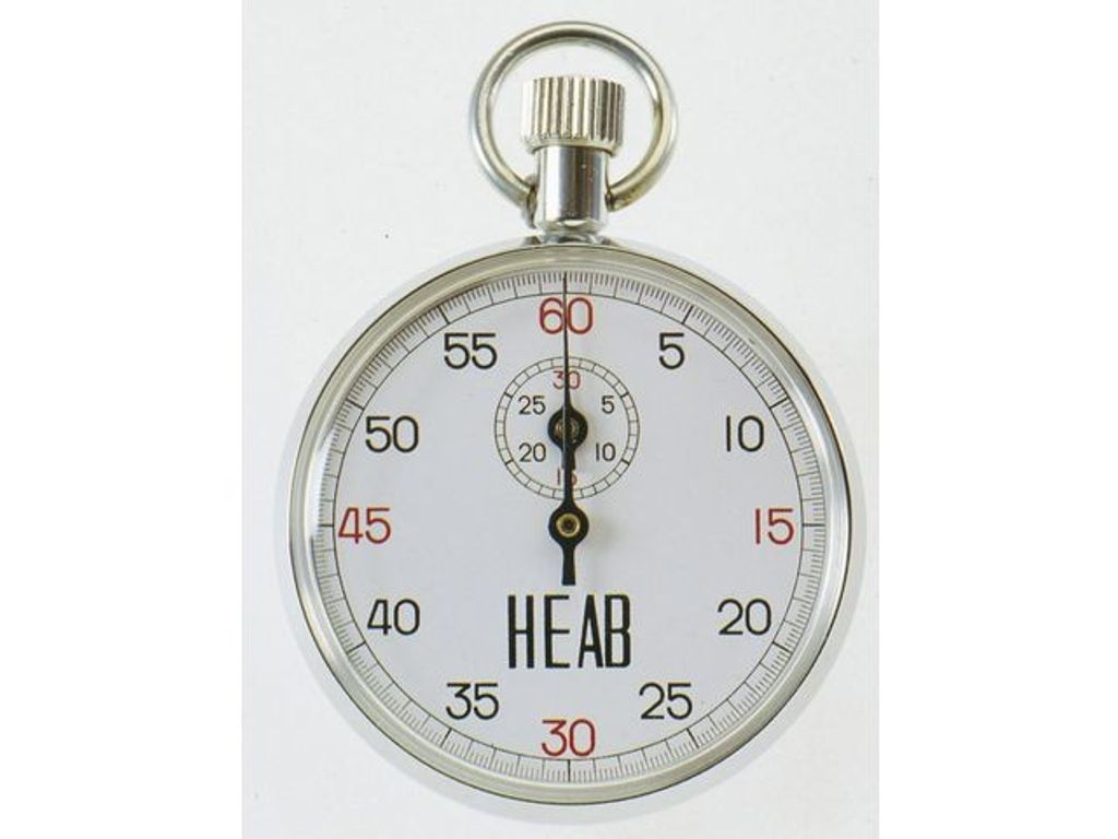 Stoppur för exempelvis mätning av puls. Ett mekaniskt stoppur som kräver att man drar upp den för att fungera. Stötskyddad, start-stopp och nollställning med krona. - Skala 0 - 30 min. - 0 - 60 sek. 1/5 sek. - Gångtid 12 timmar. - Diameter 52 mm.