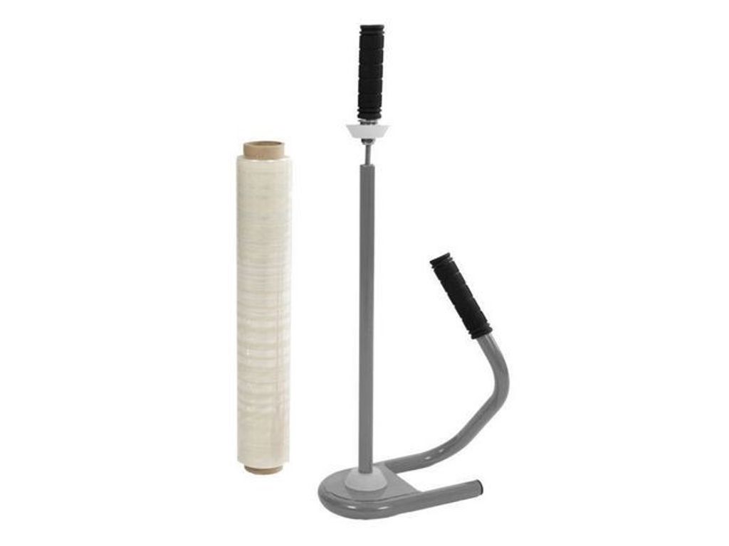 Beskrivning av Sträckfilmshållare 38-60cm grå/svart Praktisk och ergonomisk hållare för både ministräckfilm och handsträckfilm. Tillverkad av pulverlackad metall med plastkomponenter av (HDPE) samt ett handtag av gummi. - Storlek: 380-600mm