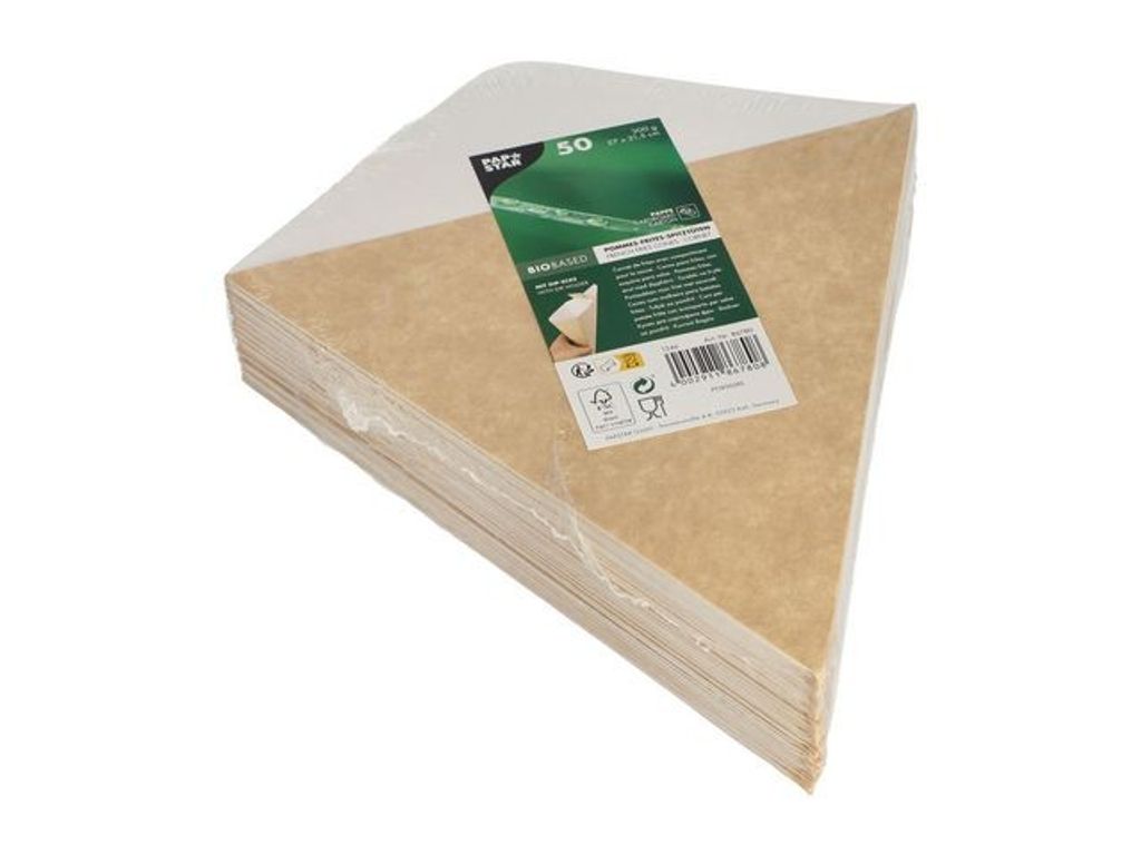 Ta din pommes frites-upplevelse till nya höjder med Papstars Pure Pommes Frites-strut med smidigt dipphörn! Ge din pommes frites-upplevelse en extra touch med Papstars Pure Pommes Frites-strut med dipphörn! Denna snygga och stabila strut är perfekt för att hålla dina pommes frites och kommer med en extra dipphörna för att njuta av dina favoritsåser. Tillverkad av fettresistent papper/kartong och biologiskt nedbrytbar, den är idealisk för att njuta av en läcker måltid medan du tar hänsyn till miljön. Med en volym på ca 300g pommes och mått på 27 cm bred och 21,5 cm hög, är den perfekt för att njuta av pommes frites i gott sällskap. Utforska den höga standarden och certifieringen av FSC och låt Papstars Pure Pommes Frites-strut med dipphörn förbättra din matupplevelse idag! - Format: Strut - Mått: 27x21,5cm - Färg: Brun utvändigt och vit invändigt - Material: Papper/kartong
