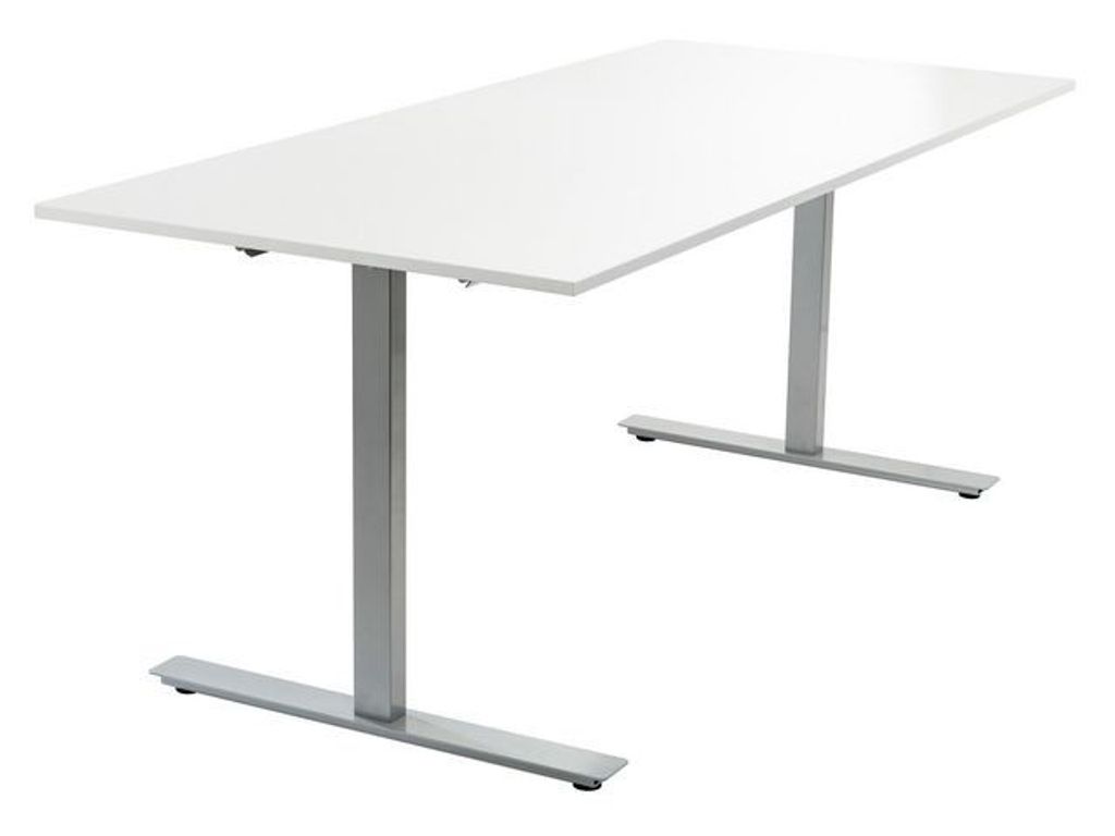 Beskrivning av T-stativ Fast 180-200cm silvergrå Stilrent T-stativ med fast höjd, färg silvergrå. För bordskiva 180-200 cm