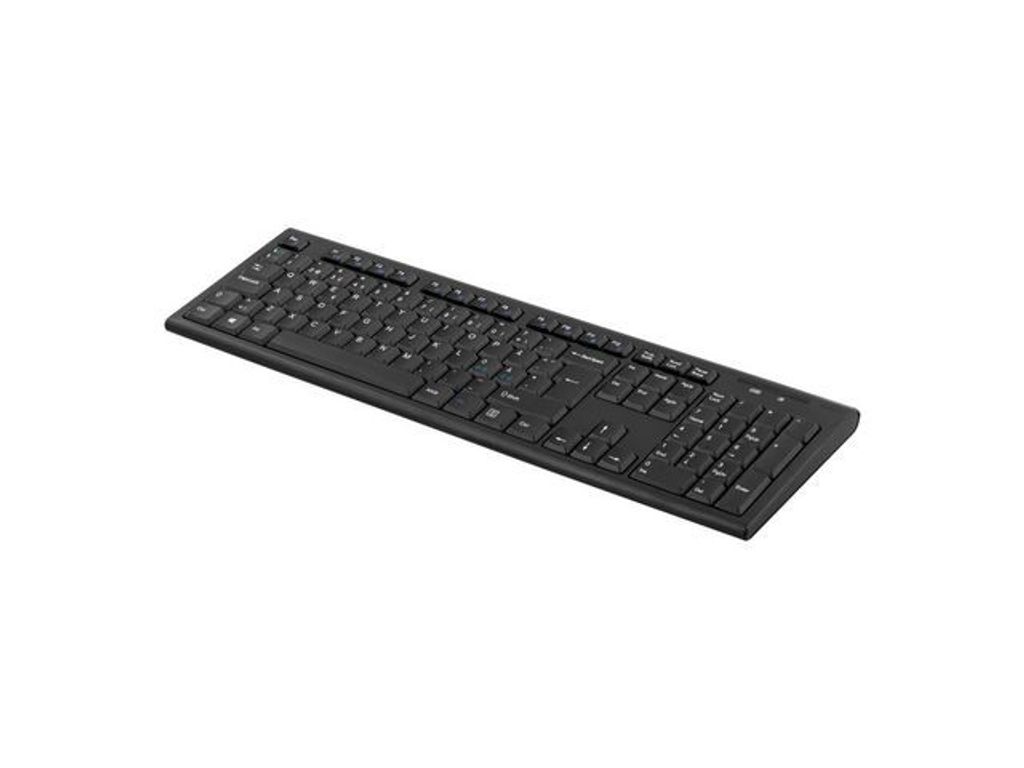 Trådlöst slimmat tangentbord med numeriska tangenter. Med en enkel uppkoppling via USB-mottagaren så sker ihopkopplingen till tangentbordet automatiskt. - Nordisk layout - Slimmad design - Upp till 10m räckvidd - 2,4GHz USB nano-mottagare - 105 tangenter med 12 mediatangenter - Drivs på två AAA-batterier (ingår ej) - Mått (BxDxH): 445x138x29 mm - Vikt: 430g (med batterier) - Färg: Svart