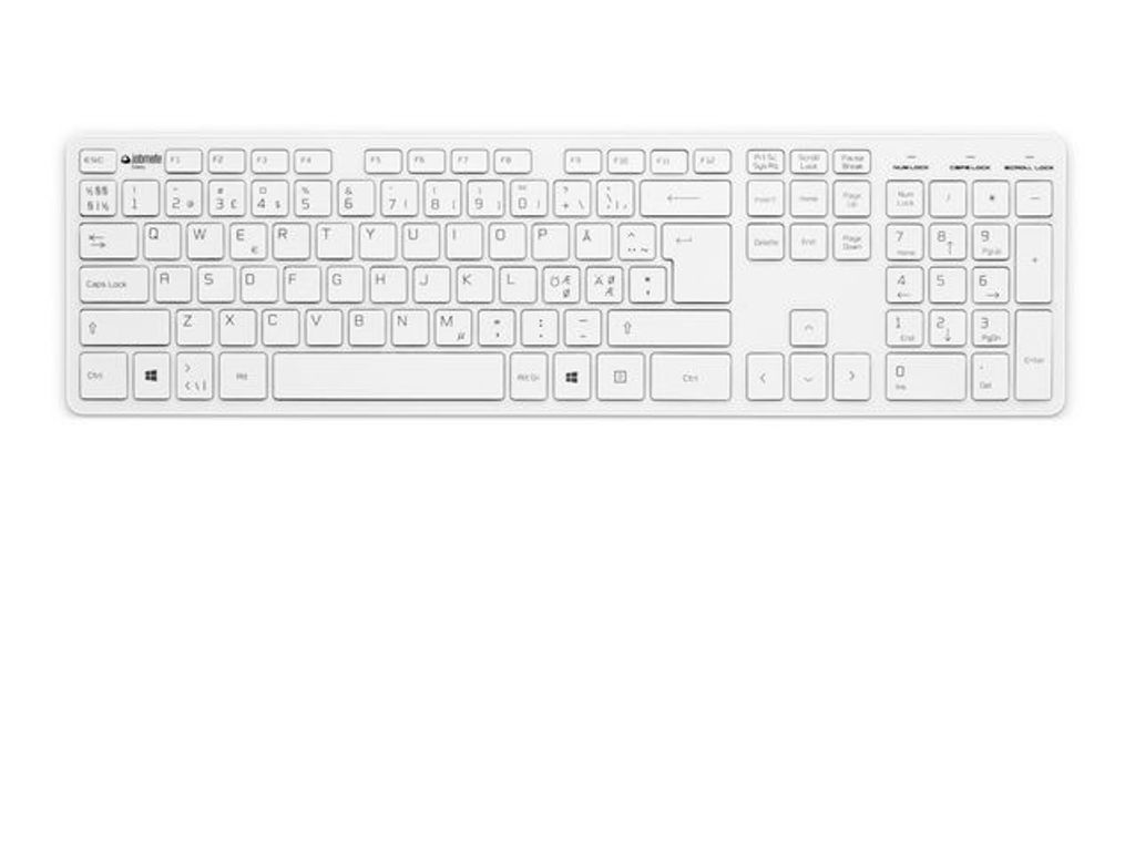 Tunt och användarvänligt tangentbord i fullstorlek. Detta tunna tangentbord har ergonomiskt utformade tangentknappar för bästa möjliga känsla när du skriver på tangentbordet. Tangentbordet i fullstorlek har vit bakgrundsfärg och svarta teckenfärger vilket ger en bra kontrast och bra synergonomi - ögat behöver inte ansträngas för att se vad det står. Den nordiska tangentlayouten gör att tangentbordet passar både för Sverige, Finland, Danmark och Norge. Tangentbordet är kompatiblet med både Windows och Mac operativsystem och ansluts enkelt via USB, Plug & Play. - Ergonomiskt utformade tangentknappar - Nordisk tangentlayout - passar Sverige, Finland, Danmark och Norge - Kompatibelt med både Windows och Mac - Ansluts via USB - Plug & Play - Färg: Vit med svarta teckenfärger - Mått: 441 x 124 x 20 mm - Sladdlängd 2 meter