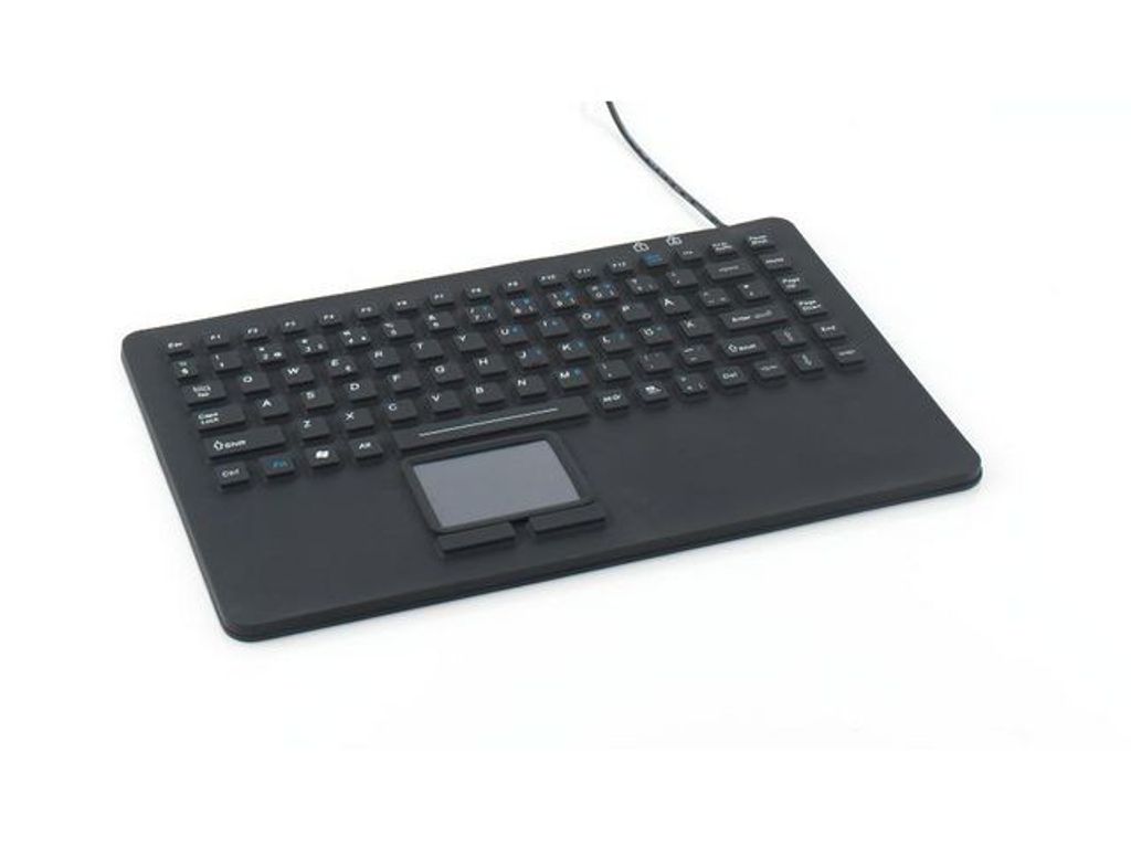 Helt damm, smuts och ett vattentätt tangentbord. Ett avancerat tangentbord designat för sjukhus och industri. Den integrerade pekplattan är placerad så att den kan användas av både vänster- och högerhänta. Helt kompakt yta vilket gör den idealisk för användning i t.ex. industri och medicinsk sektor (medicinskt/industriellt tangentbord. Slim touch-tangentbordet är också mycket tystare än vanliga tangentbord. Också bra för områden där ljudet från tangenterna ska vara tyst. Ett utmärkt val för personer som kräver förstklassig och enkel användning även när de bär handskar. - Vattentät: Kan tvättas genom doppning samt med svamp, desinfektion tillåten. - Tangentbordshöljet är av silikon. - USB-kabel längd 180 cm - Driftmiljö: -20C- + 50C. - Godkännanden: CE, FCC, RoHS & WEEE, klassificering: IP 68. - Mått: B 34 x D 23 x H 1 cm - Vikt 880 g