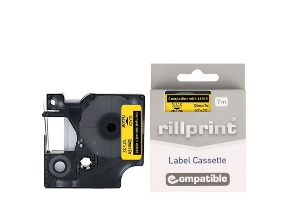 Självhäftande polyestertejp för snabb och enkel applicering Tape 12mm Svart på Gul - Kompatibla med: DYMO LabelMANAGER 150 sats, 350, 350D, 450, 450D, PC, LabelPOINT 250, 250 satsfodral, 350, 350 satsfodral - Inkluderar: 1 rulle - Mått: 12 mm x 7 m - Etiketterna kan tas bort utan att lämna kvar limrester - Fäster på nästan alla rena och släta ytor inklusive plast, papper, metall, trä och glas - Ta enkelt bort skyddsfilmen för snabb och enkel applicering - Vattentåligt - UV-resistent - Temperaturbeständig - Färg: Svart på Gul - Består till 67% av återvunnet material - Innehåller inte PVC