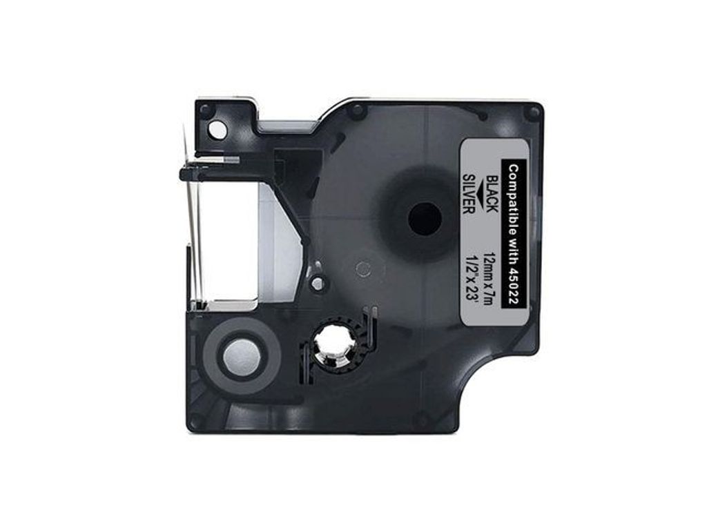 Tape 12mm Svart på Silver - Kompatibla med: DYMO LabelMANAGER 150 sats, 350, 350D, 450, 450D, PC, LabelPOINT 250, 250 satsfodral, 350, 350 satsfodral - Självhäftande polyestertejp för snabb och enkel applicering - Inkluderar: 1 rulle - Mått: 12 mm x 7 m - Etiketterna kan tas bort utan att lämna kvar limrester - Fäster på nästan alla rena och släta ytor inklusive plast, papper, metall, trä och glas - Ta enkelt bort skyddsfilmen för snabb och enkel applicering - Vattentåligt - UV-resistent - Temperaturbeständig - Färg: Svart på Klar - Består till 67% av återvunnet material - Innehåller inte PVC