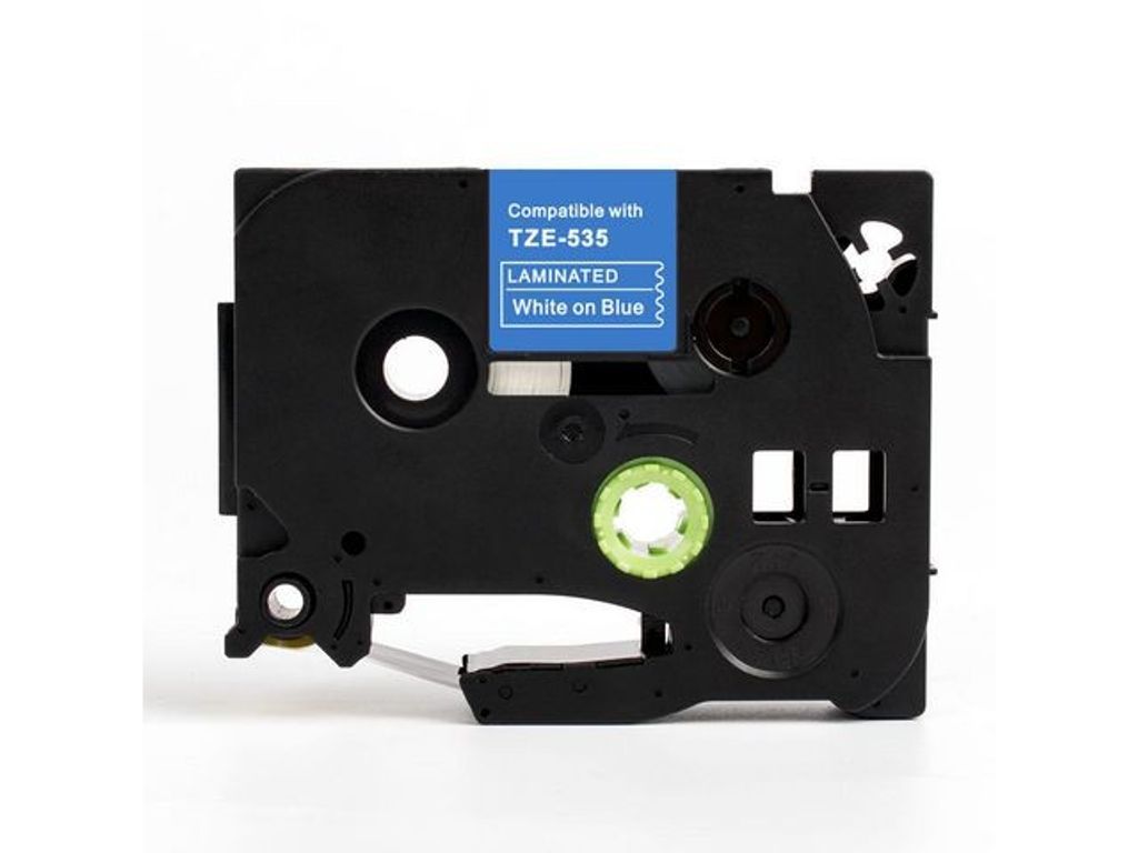 Tape 12mm TZe-535 Vit på Blå. TZ-tejper tål kraftig nötning och långvarig exponering för elementen - Mått: 12 mm x 8 m - Färg: Vit text på blå botten - Kompatibla med: P-TouchPT-1000, 1005, 1010, 1080, 1090, 1100, 1170, 1180, 1190, 1230, 1250, 1260, 1280, 1290, 1400, 1600, 1650, 18, 1800, 1830, 1850, 1880, 1950, 1960, 2030, 2100, 2110, 2420, 2430, 2450, 2460, 2470, 2480, 2700, 2710, 2730, 7100, 7500, 7600, 900, 9500, 9700, 9800, D200, PT-GL-100, PT-H100, H105 - Innehåller inte PVC