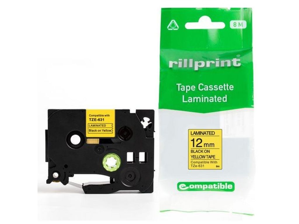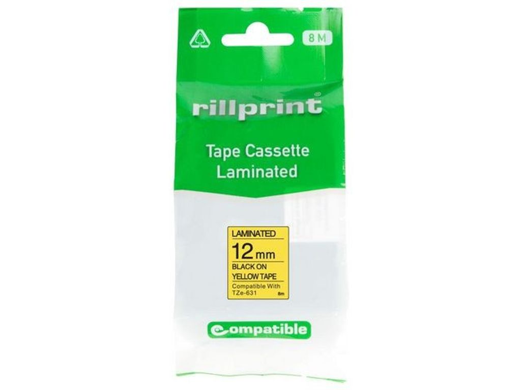 Tape 12mm TZe-631 Svart på Gul. TZ-tejper tål kraftig nötning och långvarig exponering för elementen - Mått: 12 mm x 8 m - Färg: Svart text på gul botten - Kompatibla med: P-TouchPT-1000, 1010, 1080, 1090, 11, 1100, 1160, 1170, 1180, 1190, 1200, 1230, 1280, 1290, 1300, 1400, 1500, 1600, 1650, 1750, 1760, 18, 1810, 1830, 1880, 1900, 1950, 1960, 2100, 2110, 2200, 2210, 2300, 2310, 2420, 2430, 2600, 2610, 2700, 2710, 3600, 900, 9200, 9500, PT-GL-100, PT-GL-200, PT-ST-5 - Innehåller inte PVC
