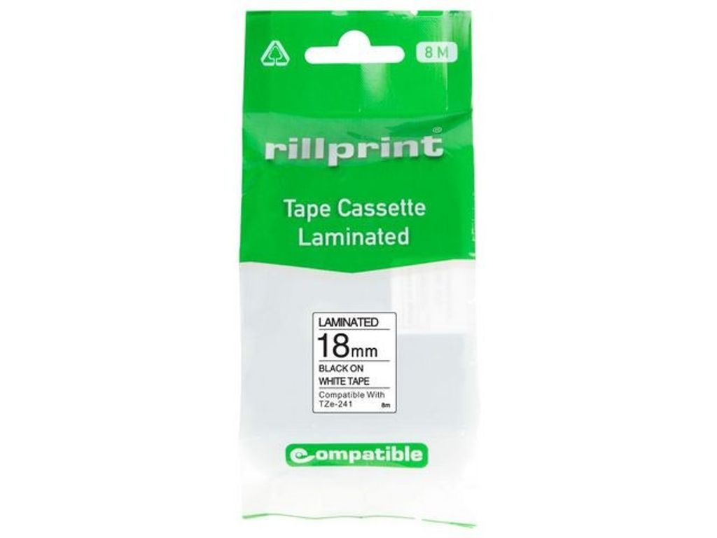 TZ-tejper tål kraftig nötning och långvarig exponering för elementen Tape 18mm TZe-241 Svart på Vit. TZ-tejper tål kraftig nötning och långvarig exponering för elementen - Mått: 18 mm x 8 m - Färg: Svart text på vit botten - Kompatibla med: P-Touch PT-1000, 1010, 1080, 1090, 11, 1100, 1160, 1170, 1180, 1190, 1200, 1230, 1280, 1290, 1300, 1400, 1500, 1600, 1650, 1750, 1760, 18, 1810, 1830, 1880, 1900, 1950, 1960, 2100, 2110, 2200, 2210, 2300, 2310, 2420, 2430, 2600, 2610, 2700, 2710, 3600, 900, 9200, 9500, PT-GL-100, PT-GL-200, PT-ST-5 - Innehåller inte PVC