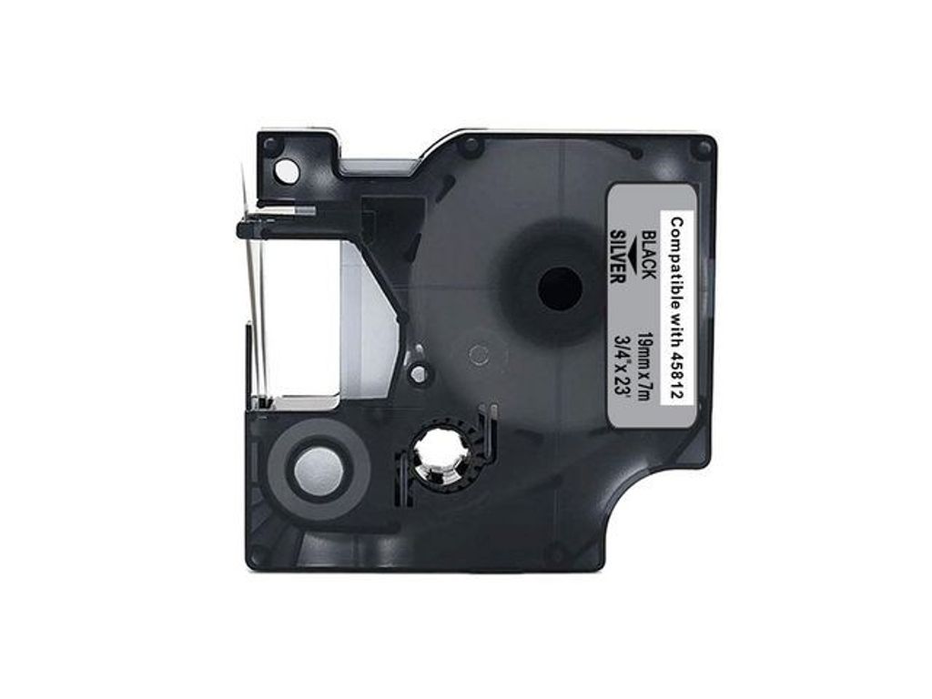 Tape 19mm Svart på Silver - Kompatibla med: DYMO LabelMANAGER 150 sats, 350, 350D, 450, 450D, PC, LabelPOINT 250, 250 satsfodral, 350, 350 satsfodral - Självhäftande polyestertejp för snabb och enkel applicering - Inkluderar: 1 rulle - Mått: 12 mm x 7 m - Etiketterna kan tas bort utan att lämna kvar limrester - Fäster på nästan alla rena och släta ytor inklusive plast, papper, metall, trä och glas - Ta enkelt bort skyddsfilmen för snabb och enkel applicering - Vattentåligt - UV-resistent - Temperaturbeständig - Färg: Svart på Silver - Består till 65% av återvunnet material - Innehåller inte PVC